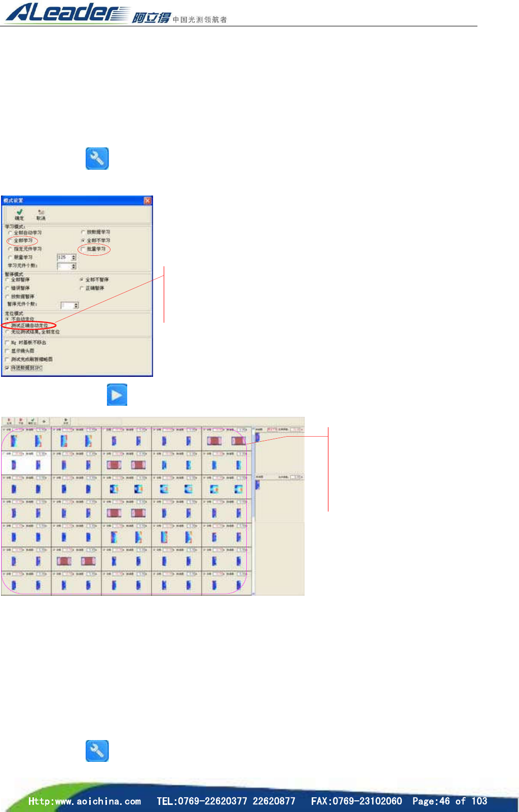 先进行模式设置将模式设置为限量学习 125 次+错误暂停学习十块不同的 PCB 板。