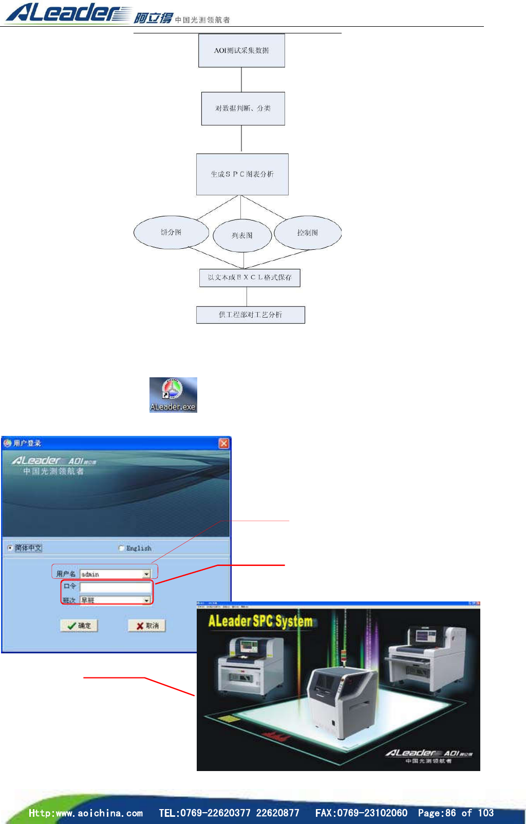 在 Windows XP 桌面双击 程序启动图标,启动 AOI 程序,单击“进入 SPC”,选择类