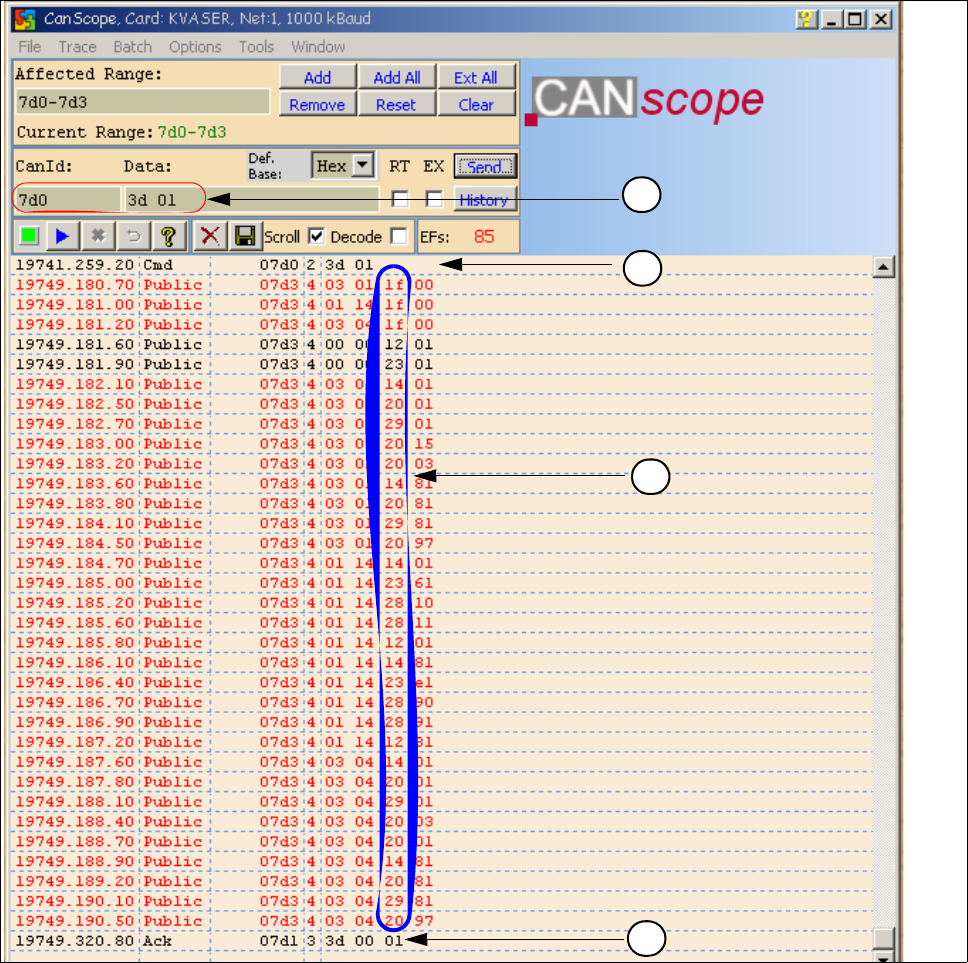 (5)Acknowledge (Answer) Command CAN ID +1hex --> 3d 00 01