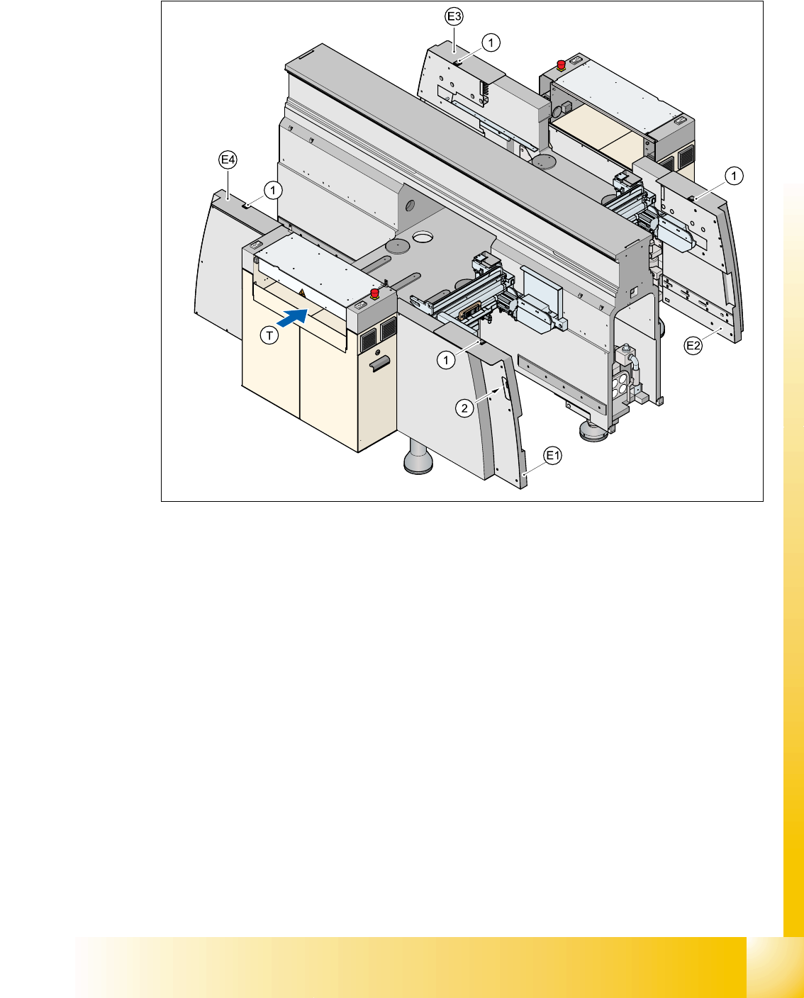 Two push-buttons are integrated into the guard module (items E1, E2, E3 and E4). These are used