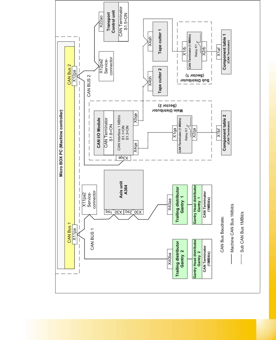 1Mbit/s and the CAN BUS for the component table and tape cutter with 500 kbit/s. The speed of