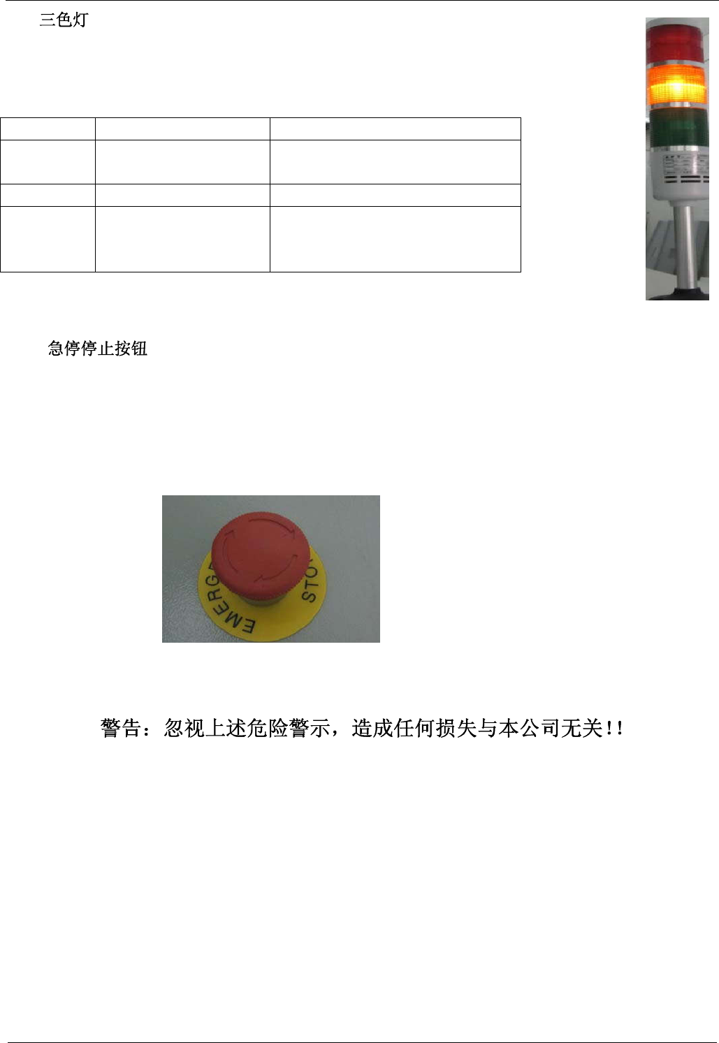 三色灯的相关说明如下