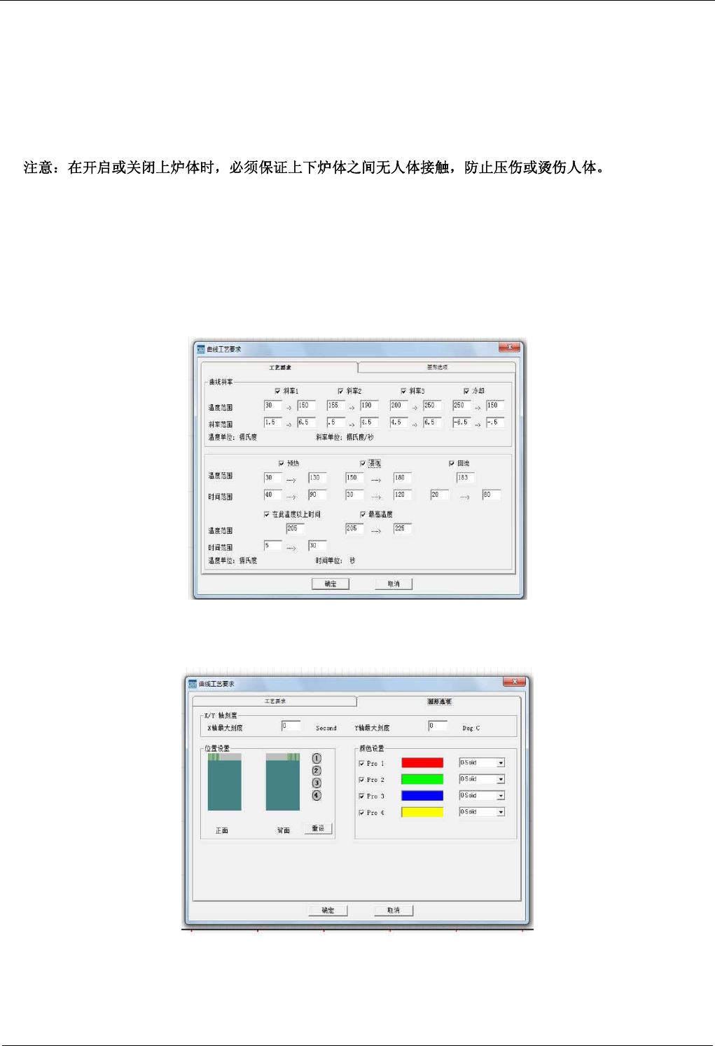 3.在温度曲线测试栏内,根据锡膏工艺曲线要求,设置好各工艺参数(如:上升斜率、浸润时间、最高温度