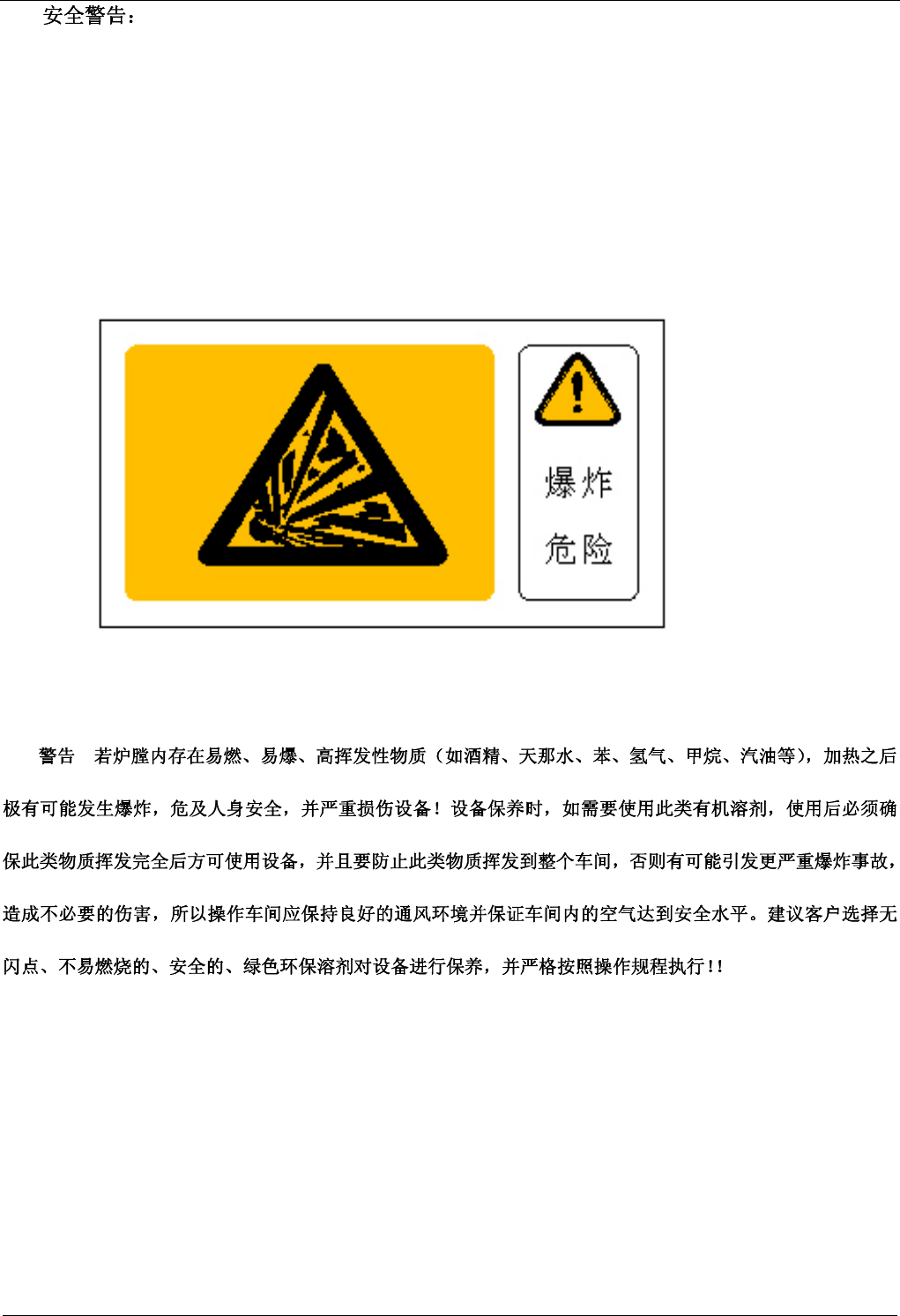 全事故,炉胆加热到高温工作后需要很长时间才能降到室温,此时相关工作人员才能触碰里面的机械元件。检修