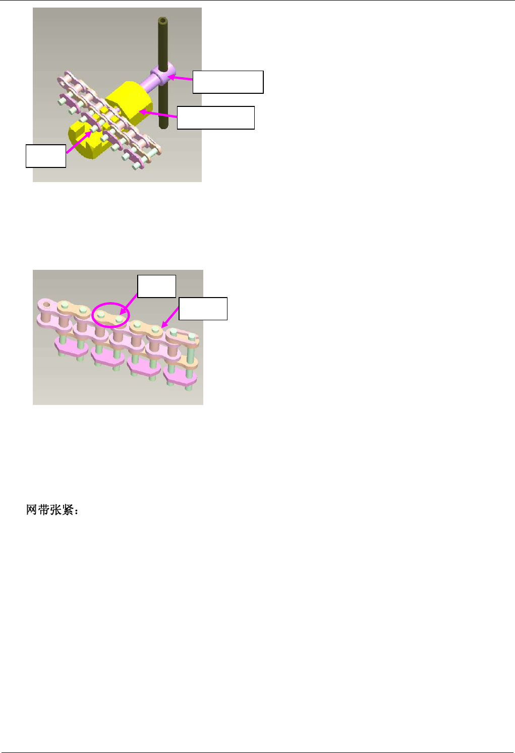 现象,导致设备上的张紧机构失效,因此需对中支链条的张紧力进行调整,调整方法为:裁剪中支链条或调整入