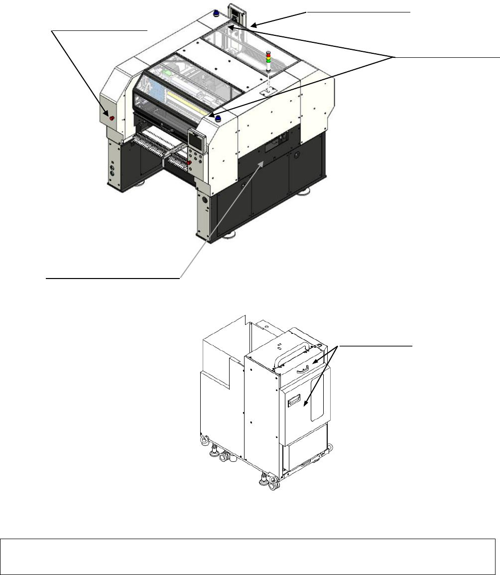 VM 102 20 23.0 721 - 97 - 10. 涂饰颜色 ■ 本公司标准颜 色 白色 W-13 (G1 0) ※ 关于托盘供料器,为 白色 W-13 ( G50) 。 11. 安全装置 为了安全使用本机器 ,在 VM102 上安装了下图所示的安全装置 。 若在机器运转时按下紧 急停止开关 ,或者在打开罩 时,会强制性 停止运转。 Remarks • 为了安全使用机器, 在使用 时, 无论时在运转时 还是停止时, …
