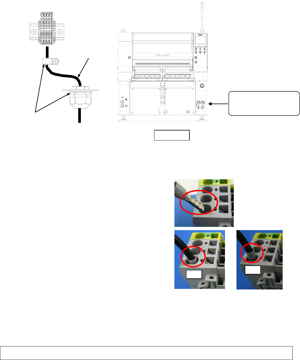 ■ 如下图所示,请采用在 2 处夹钳电缆的方法进行配线。