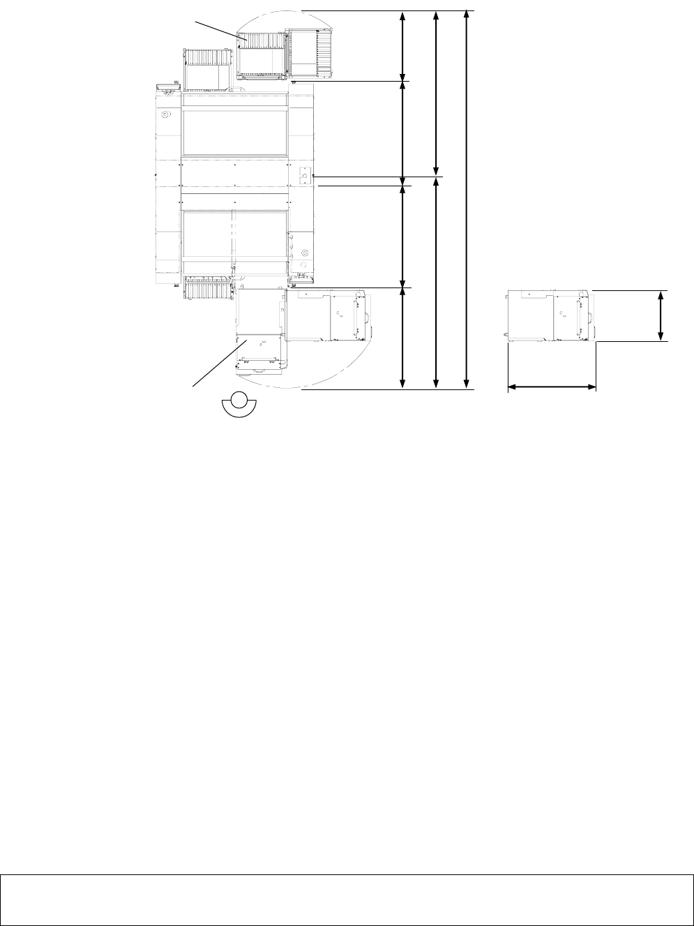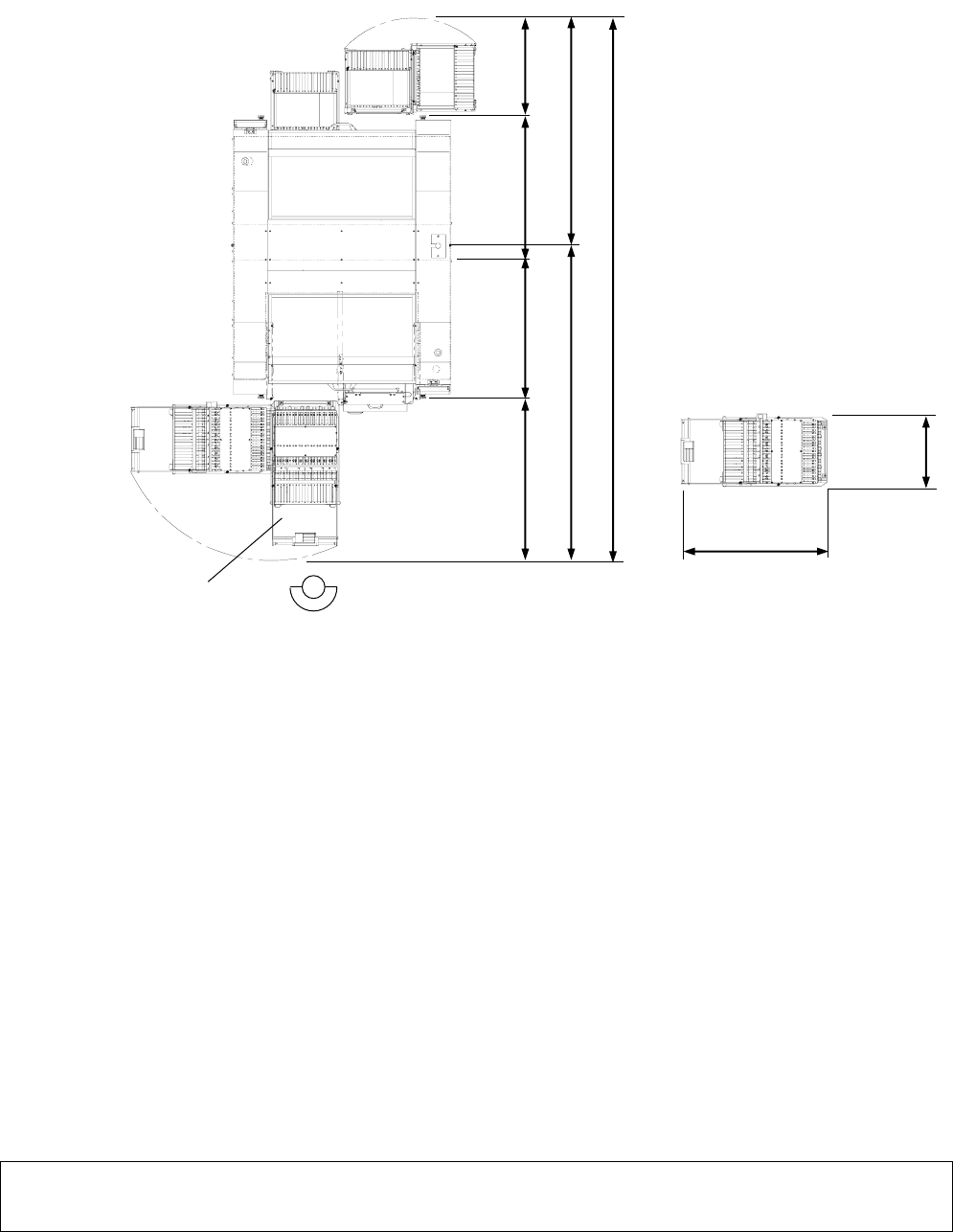 【前侧】交换台车+托盘供料器安装时,必须的最小限空间。