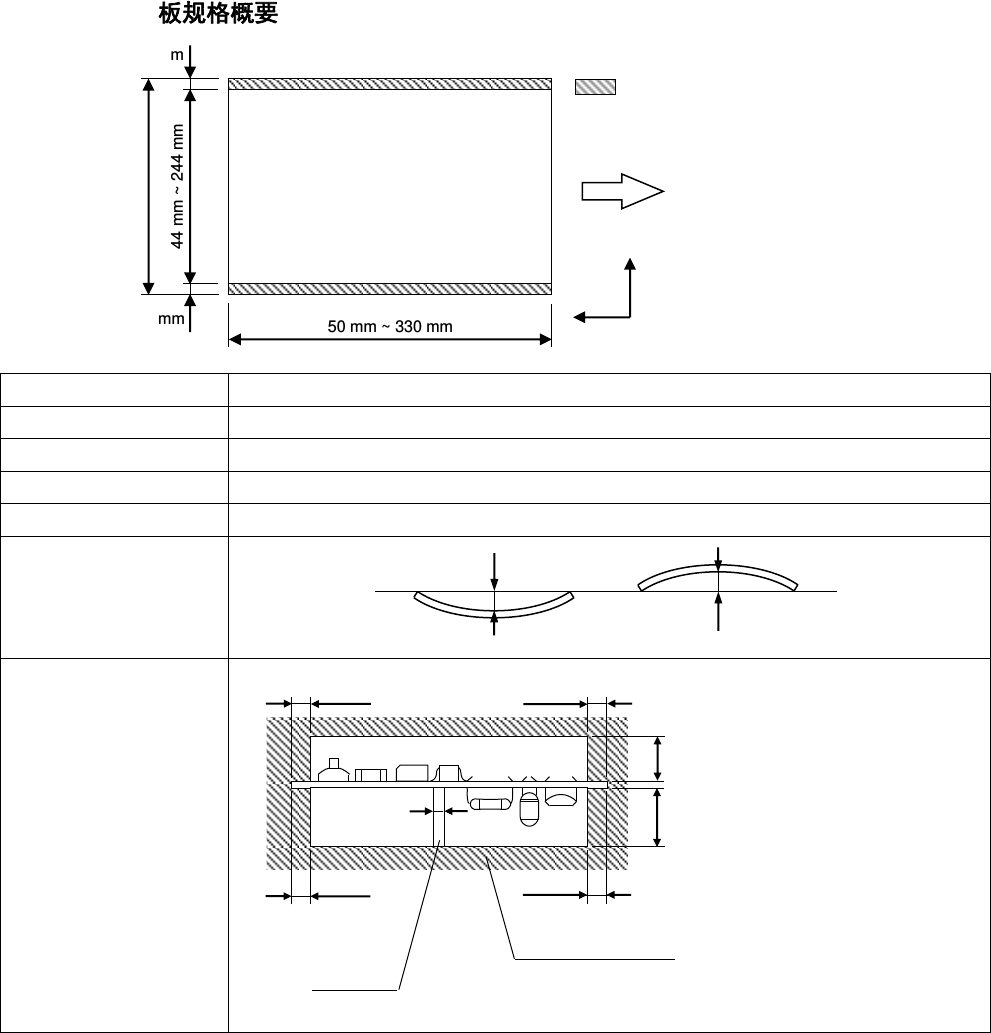 VM 102 20 23.0 721 - 58 - 项 目 规 格 基板缺口条件 基板缺口尺寸必需满足 以下 2 个条件。 条件 A 基板缺口尺寸必需满足以下 条件。 L L1 50 mm ≦ L ≦ 330 mm L/4 或者 100 mm 的较小的一个 W W1 50 mm ≦ W ≦ 250 mm W/3 或者 30 mm 的较小的一个 ※ 以上是在基板厚度为 1.6 mm 以上时的情 况。 基板厚度 1.6 m m 未满 时,请…
