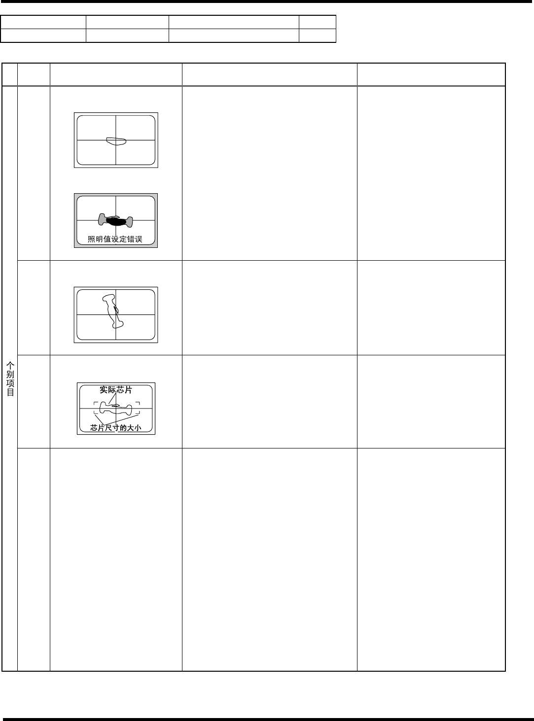 HGR14 附录 1.4 轮廓识别错误信息 附录 1-103 参考 No. 形状编号 类别 80 5j 过滤器 、 HIC 等 1/1 代码 内容 原因 对策 1) 识别角度超出容许范围 ± 30 ° 以上 请确认部品高度、 吸着位置、 吸着 偏移量、 使用吸嘴, 使吸着状态更 趋稳定。 请确认式样角度。 ( 配置数据 ) 21 (15) 识别角度异常 < 错误画面 > 1) L 设定错误 请正确设定 L 。 ( 芯片数据 …