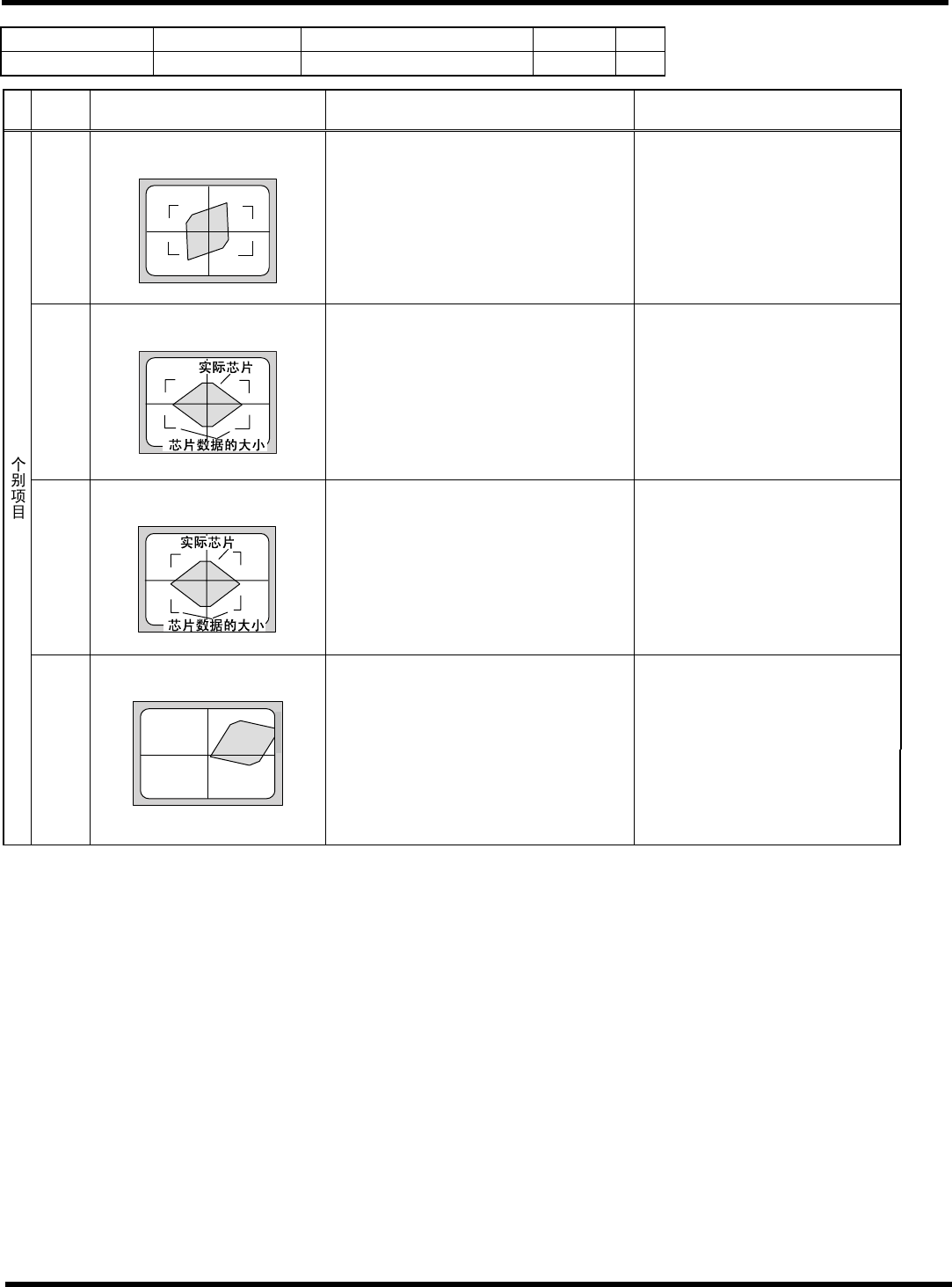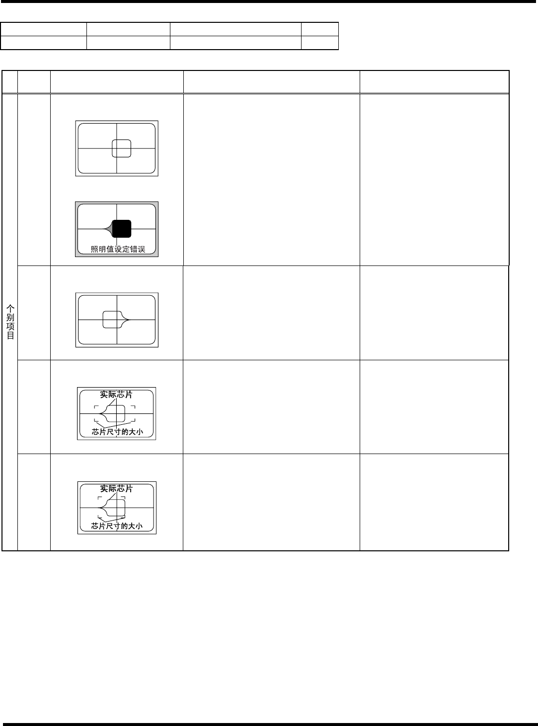 HGR14 附录 1.4 轮廓识别错误信息 附录 1-107 参考 No. 形状编号 类别 92 ~ 93 5g 带角的钽电容器 等 2/2 ∗ 以下图的式样为 0 ° 。 代码 内容 原因 对策 1) L 或者 W 设定错误 请正确设定 L 或 W 。 ( 芯片数据 ) 27 (27) (41) L 或者 W 设定错误 < 错误画面 > 1) 部品异常 请检查部品的包装状态。 40 43 (40) (43) 角度异常 &l…