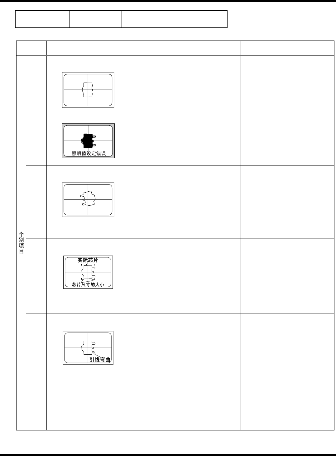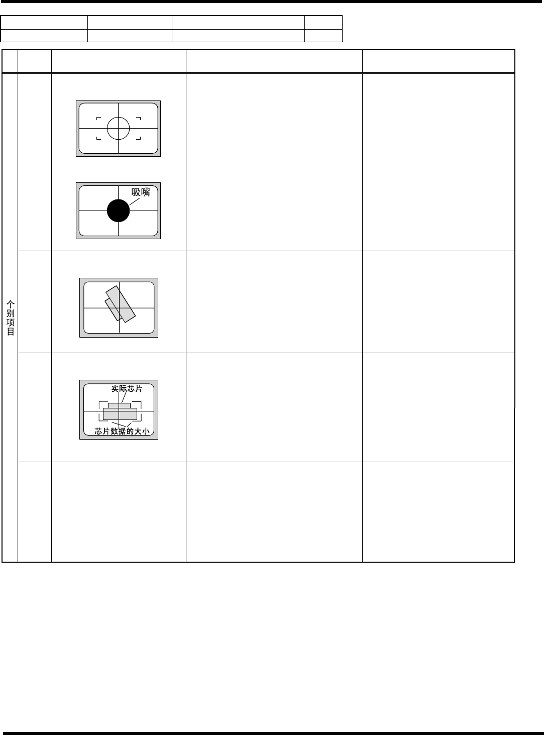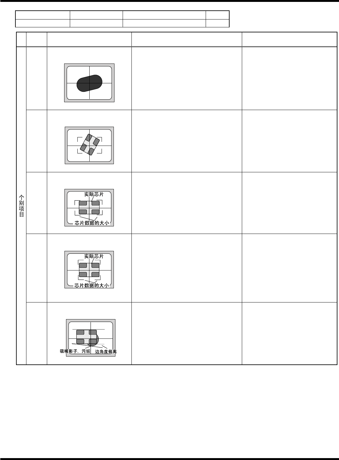 HGR14 附录 1.4 轮廓识别错误信息 附录 1-116 参考 No. 形状编号 类别 160 5h 壳、插入连接器 ( 外形 ) 等 1/1 代码 内容 原因 对策 1) 吸着错误、吸着异常 ( 错误画面上只看见吸嘴的轮廓 ) 请确认部品高度、 吸着位置、 吸着 偏移量、 使用吸嘴, 使吸着状态更 趋稳定。 20 特征点数在规定外 < 错误画面 > < 推断图像 > 2) 参考编号错误 [ 规定值 ] 3 …