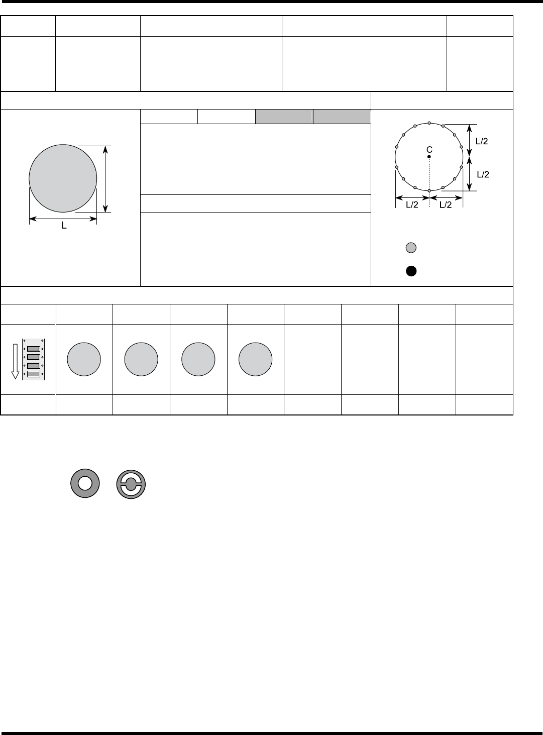 HGR14 附录 1.3 各种形状输入数据项目 附录 1-66 形状编号 对象形状 参考编号 对象部品 ( 类别 ) 对应 Ver. 5l 特殊形 12 128 圆盘 焊锡球 等 V7.00 以上 形状以及输入数据 识别方式以及结果 长度 L 宽度 W 判断标准 1) 长度 : L ± (20%) 等 (Top view ) 在圆的周围识别 : 检测位置 : 检测中心 可识别姿势 ( 只可识别以下式样 < 也有一部分例外 >…