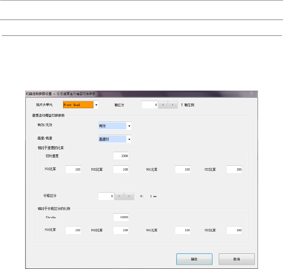 机器控制参数 2- 74 设定项目 2-2- 11 - 1 No. 項目 入力範囲 単位 備考 最小値 最大値 1 贴片头单元 0 1 参照 2-2- 11 -2 贴片头单元 2 轴区分 0 19 3 速度连动增 益切换参数 有效 / 无效 无效 有效 4 高速 / 低速 高速時 低速時 5 相对于速度 的比率 切片速度 6 PG1 比率 0 255 7 PG2 比率 0 255 8 VG1 比率 0 255 9 VIC 比率 0 25…