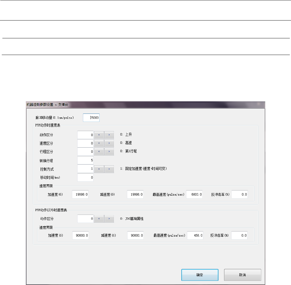 在PTP动作时的速度表中,如将“动作区分”、“速度区分”、“行程区分”、“控制方式”设置