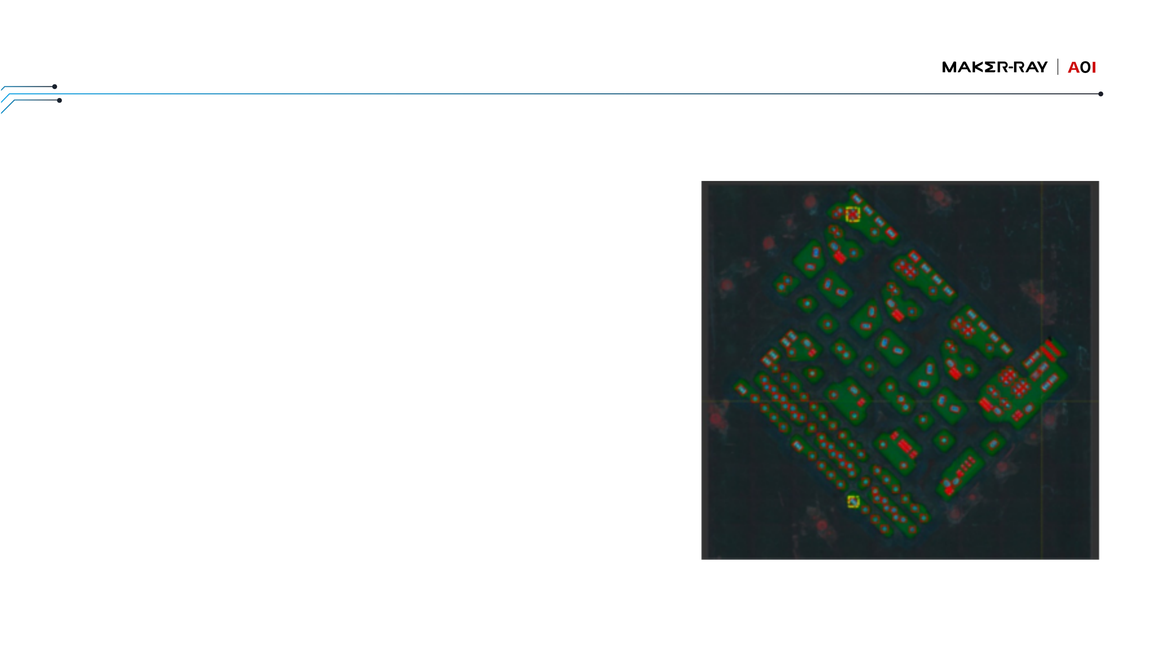 对特征模糊识别能⼒强,有效检出焊锡上的锡洞,不受引脚、器件⼲扰