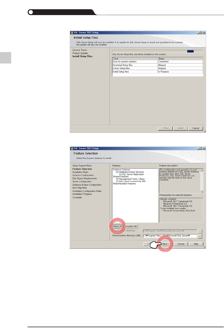 MS-SQL Server 2012 Express的安装过程如下。