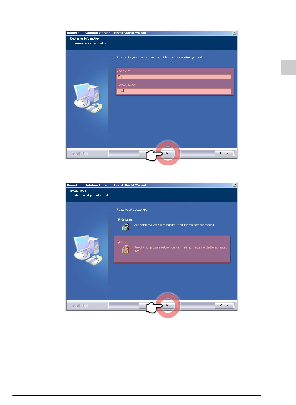 STEP3. 输入使用者名与公司名后,单击<Next>按钮