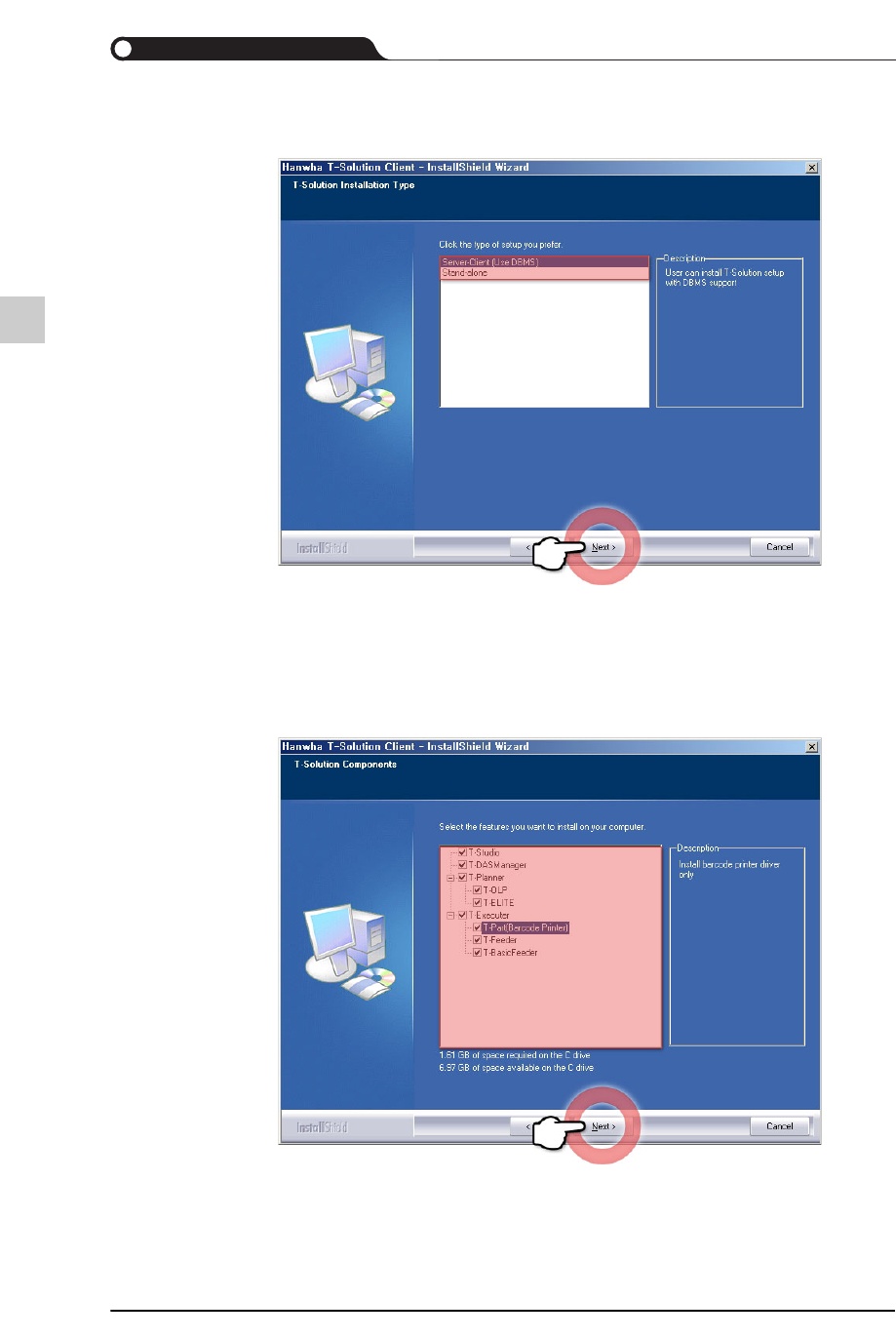 STEP6. 选择了需要安装的T-Solution的程序后,单击<Next>按钮