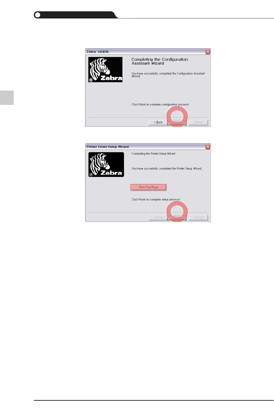 STEP15. 为了试印刷而选择<Print Test Page>按钮后,单击<Finish>按钮