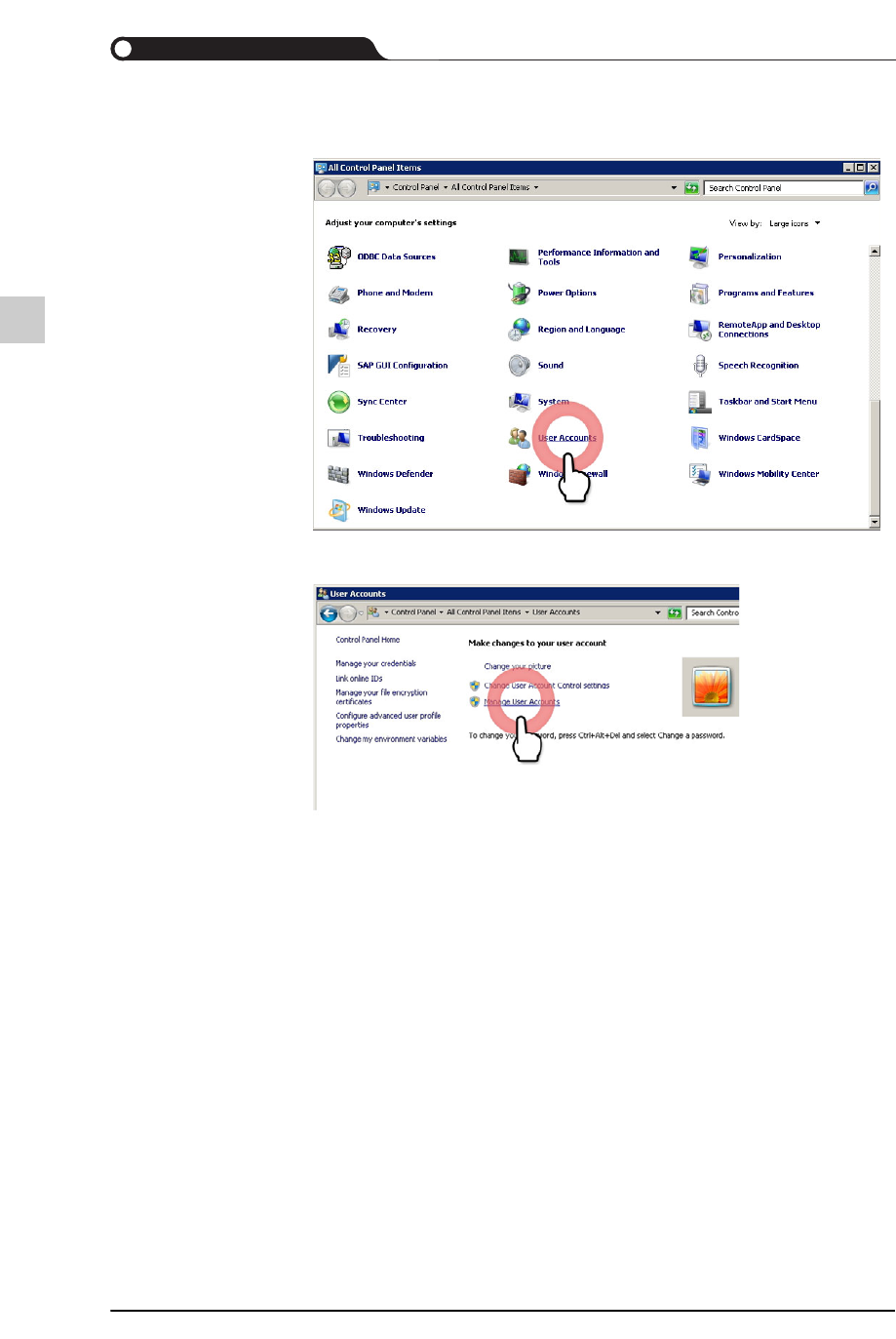 5-28 {TzYG|˅Gn {TzYG|˅Gn STEP2. 选择 “User Accounts” 菜单 STEP3. 选择 “Manage User Accounts” 菜单