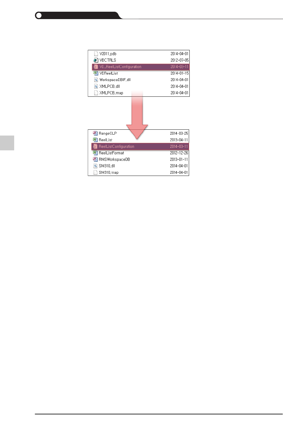 8-8 {TzYG|˅Gn {TzYG|˅Gn STEP4. 设置 ReelListConfigu ration.ini 文件 删除现有的 ReelList Configuration.ini 后,把 VD_ReelListConfiguration.ini 文件名改成 “ReelListConfiguration.ini”
