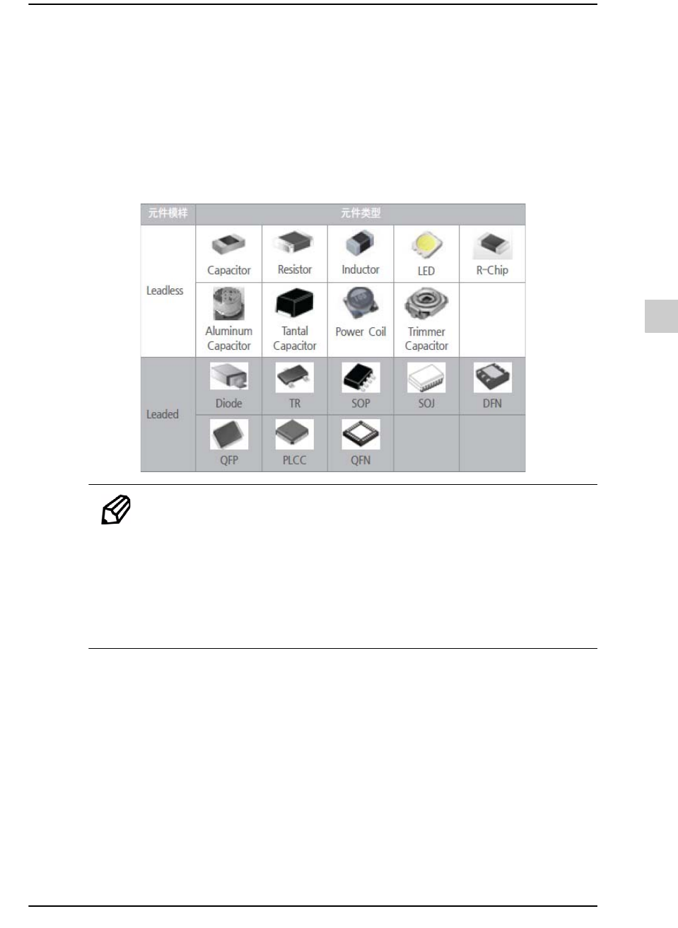 备注 如果是能够自动示教的元件,大多数能够自动识别,但是一部