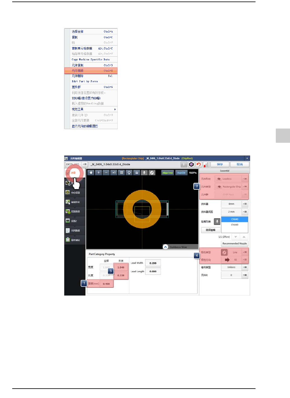 STEP11. 在“必需”菜单输入了以手动方式测量的元件厚度后,设定元件尺寸及极性