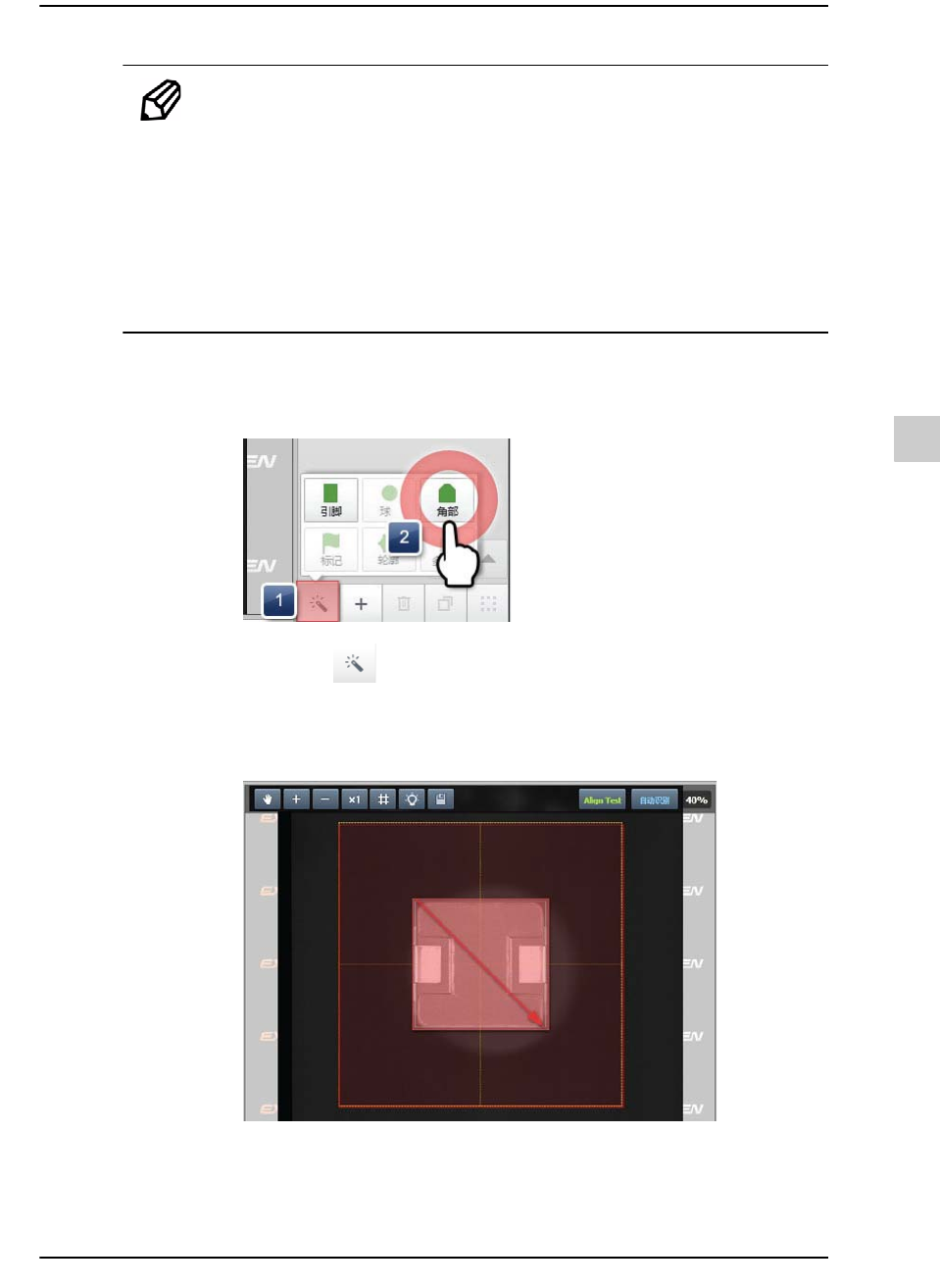 10-28 {TzYG|˅Gn {TzYG|˅Gn STEP3. 符合元件形状地设置角部参数 备注 为了把元件的形状接近矩形而引脚 形态不明确并且主体较亮 而难以识别引脚的元件加以登记, 适用 Corner 算法。 关于 Corner 算法种类的详细内容, 在 WEB 手册, 请参阅 “ 形选 择框 ” 。 (WEB 手册 路径 : T -Solution2 > 查看菜单…