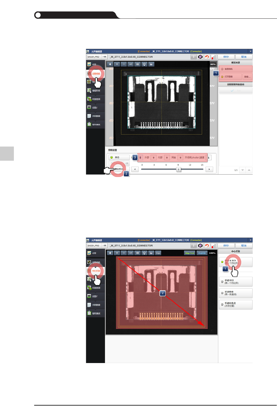 STEP13. 在“中心识别”菜单设定ROI及排列元件