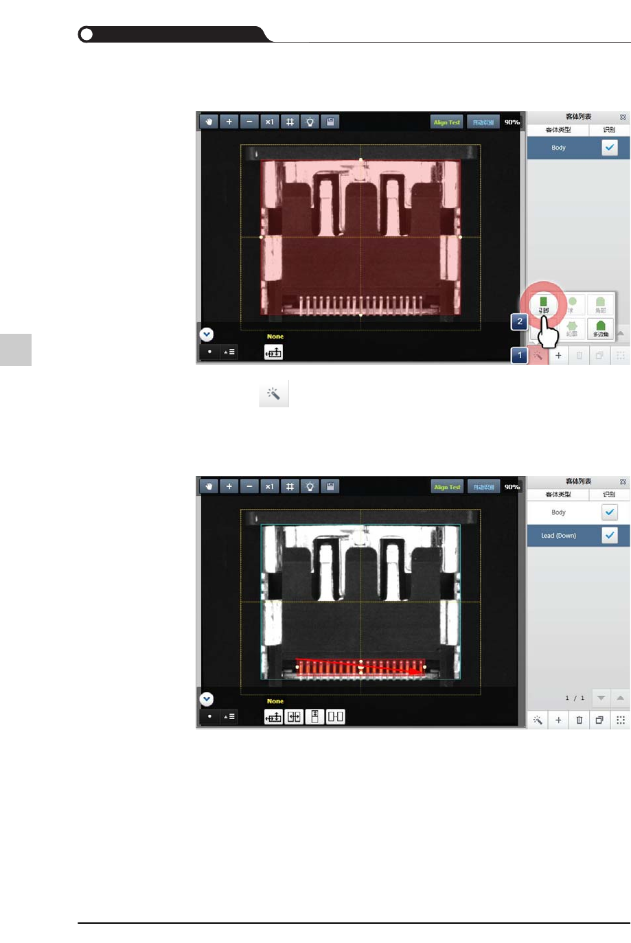 备注 如果无法自动补正ROI与元件登记角度,则单击<手动 ROI>