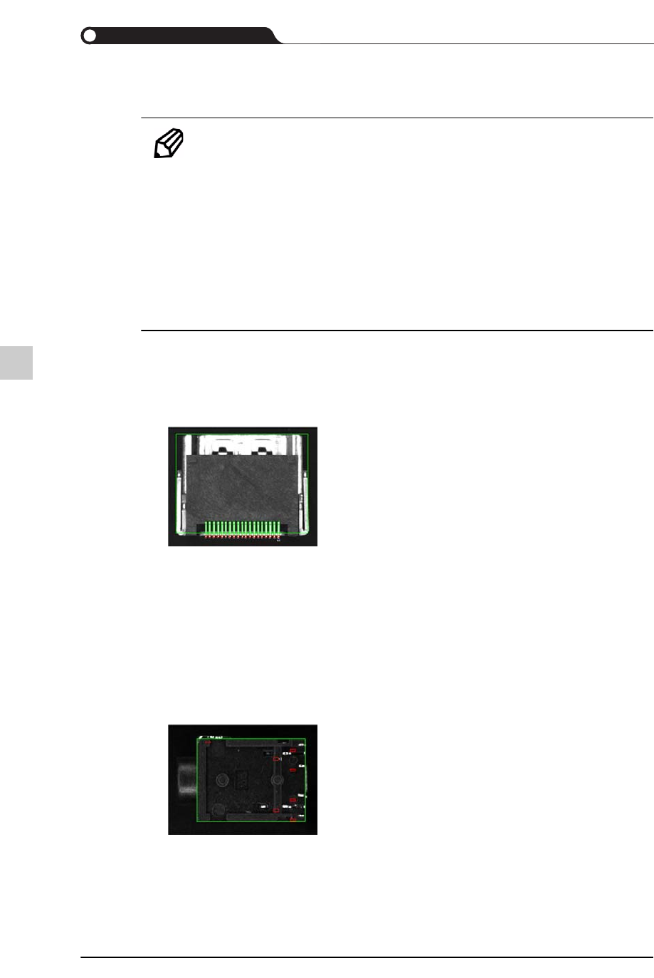 10-49 登记新元件 STEP3. 简易把相机赵明设置成 “7 / 7 / 7 / 7 / 7 ~ 9 / 9 / 9 / 9 /9” →在 EXCEN PRO(M)/(D) 与 EXCEN FLEX 显示出来的销形态相 似 STEP4. 以销为基准设置贴装点 形态复杂的元件 需要登记成图像识别客体的形 状相邻时 存在着形状比较模糊的部分时 1: 引脚周边存在着其它客体的鲜明边图像 2: 引脚周边比较亮 ( 卡钳无法识别 …