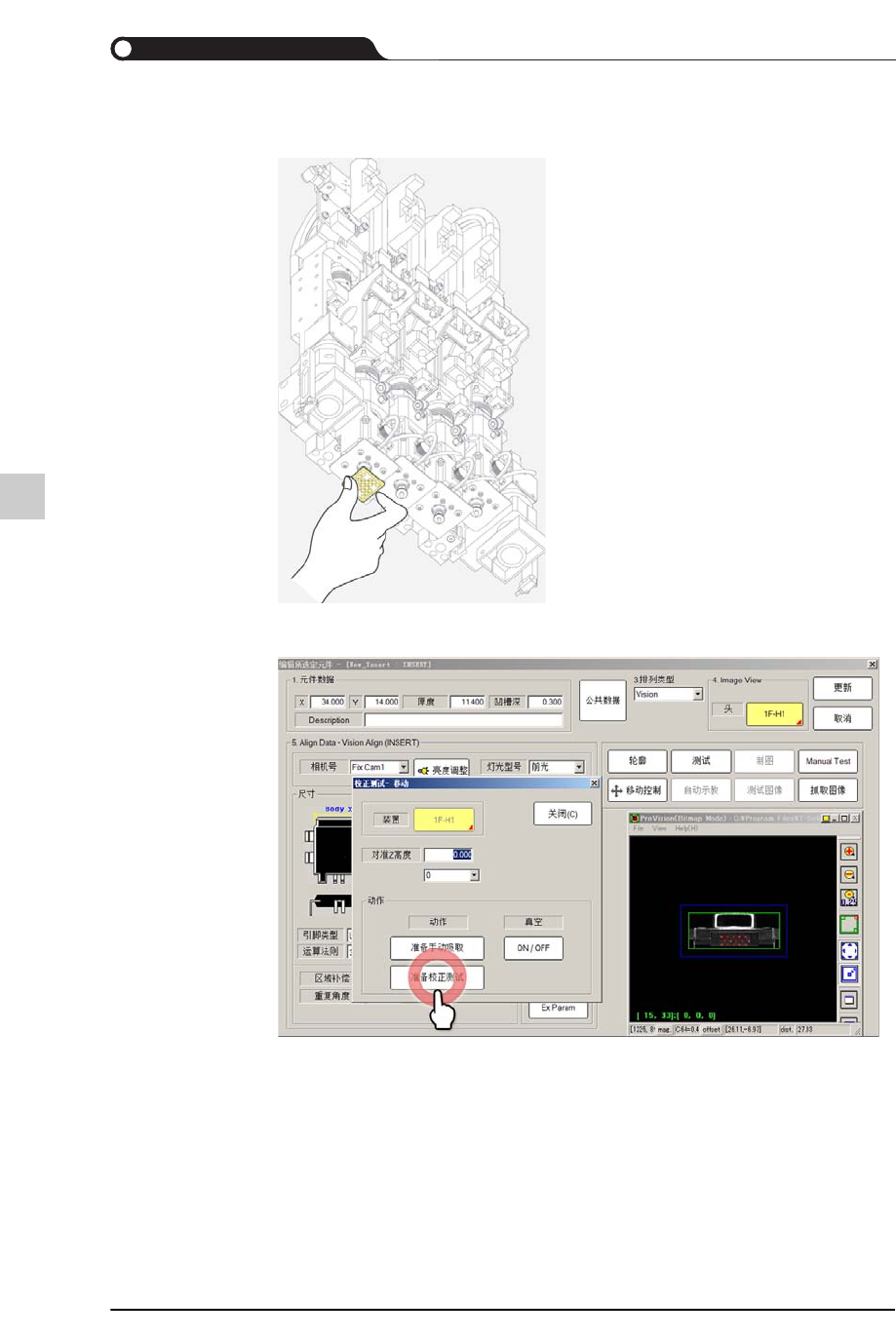 STEP12. 以手动方式利用吸嘴吸取需要识别的元件,需要时修改对准Z高度
