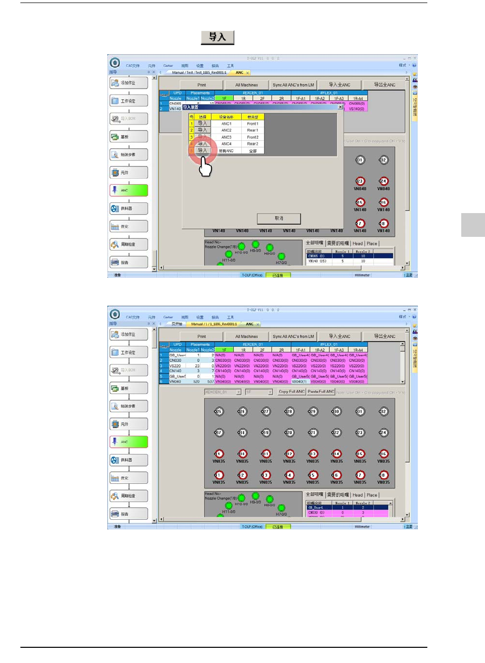 可以查看这里所印刷的吸嘴配置信息后在生产线上的设备把吸嘴配置到ANC。