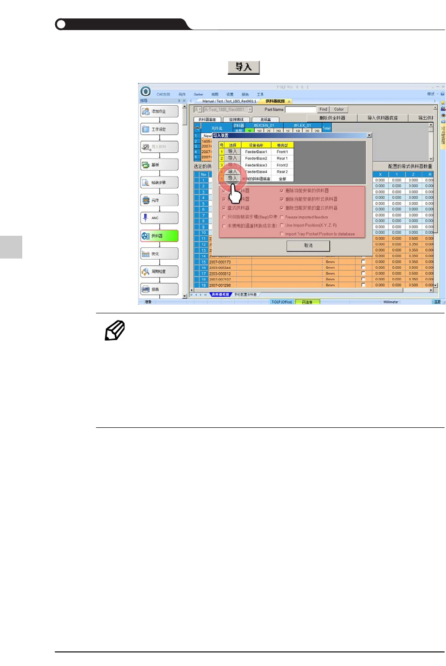 备注 在这个例示中,为了导入所选PCB 程序的所有供料器底座的配