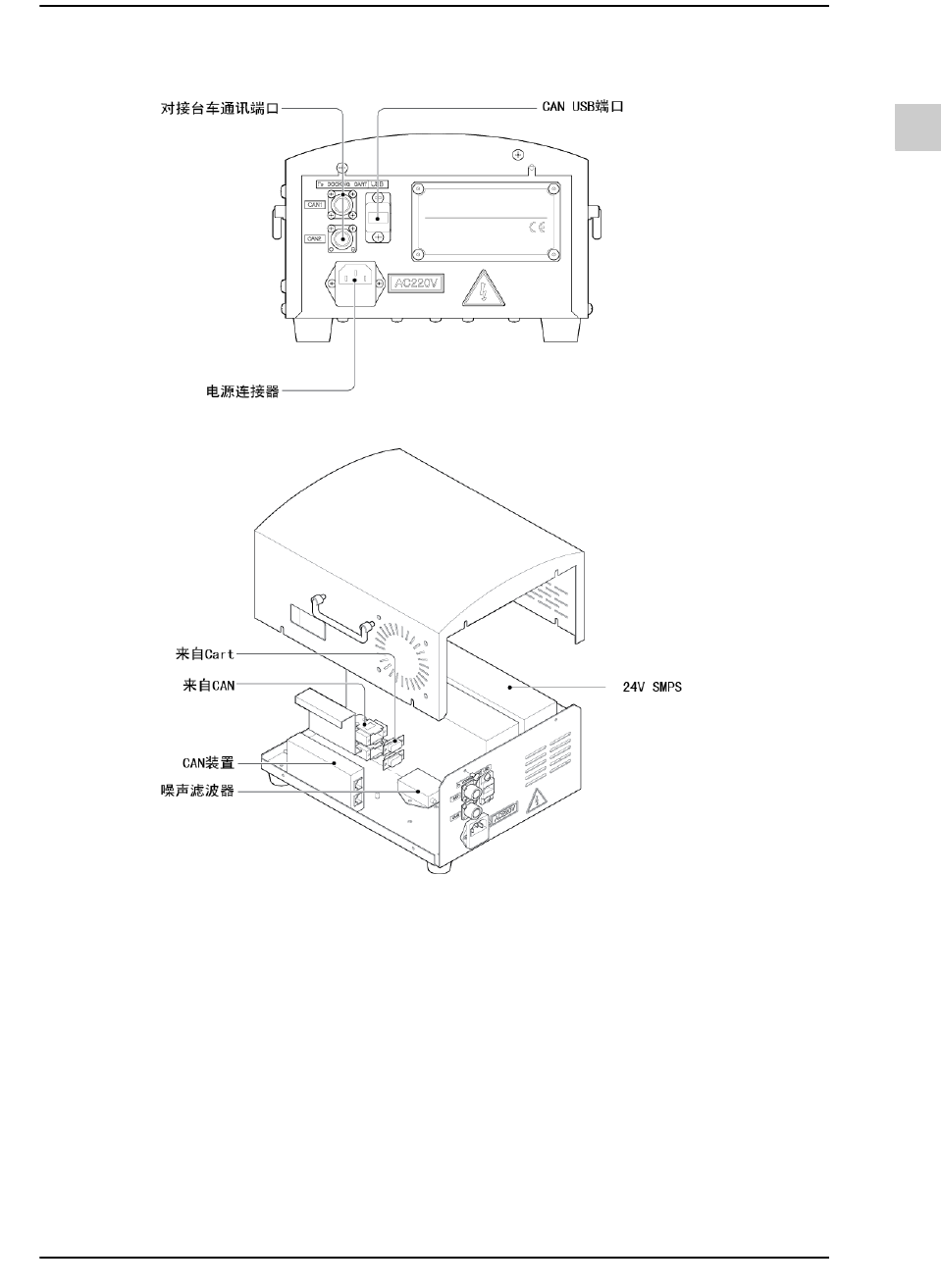 2-16 {TzYG|˅Gn {TzYG|˅Gn 2.2. Feeder Setup Box 2.2.1. 系统概要 2.2.1.1. 概要 Feeder Setup Box 装置为对接台车供应电源, 还能为安装了 Feeder Station S/W 的电脑 与 CAN 装置之间提供界面。 2.2.1.2. 产品规格 2.2.1.3. 装置名称 Feeder Setup Bo…