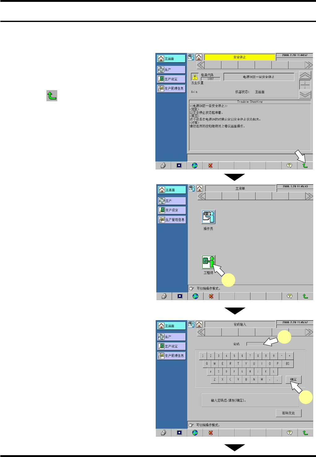 AV131 编程手册 6.2 新基板识别数 据的编制和编 辑 D79PCC-4X-02 0-B0 6.2- 2 3. 调出 “ 数据修正 ” 画面 按 “ 主菜单 ” 画面 的 [ 数据 修正 ] 。 4. 基板识别数 据的选择 按 [ 基板识别 数据 ] 。 5. 基板识别数 据的选择 选择要编辑的基 板识别数据。 ( 数据名称与 NC 数 据名称链接着。 ) 3 4 5