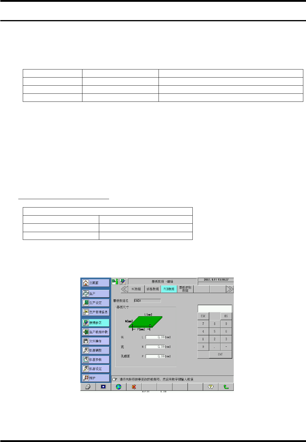 可以从屏幕显示的基板数据编辑栏输入基板的数据。基板数据编辑栏如下图所示。