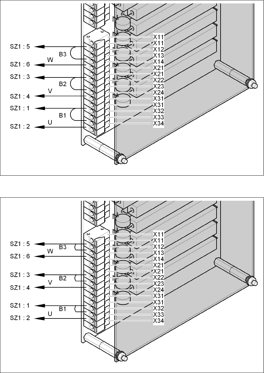 Abb. 4.2 - 9 Einschaltstrombegrenzung - Anschlüsse und Brücken bei 3 x 380 V~ / 3 x 400 V~ / 3 x 415 V~