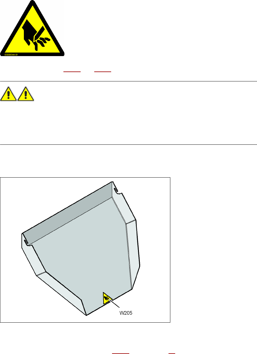 Abb. 2.2 - 5 Warnschild W205 am Querträger unterhalb des Gurtschneidgeräts