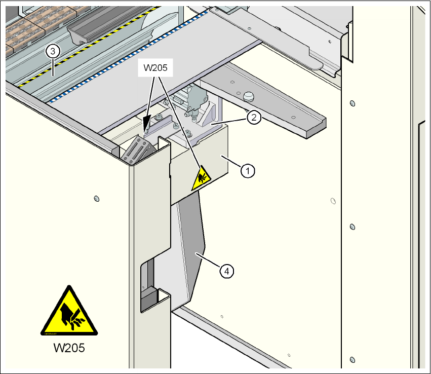 2.2.3.2 Warnschild W205 am Querträger unterhalb des Gurtschneidgeräts