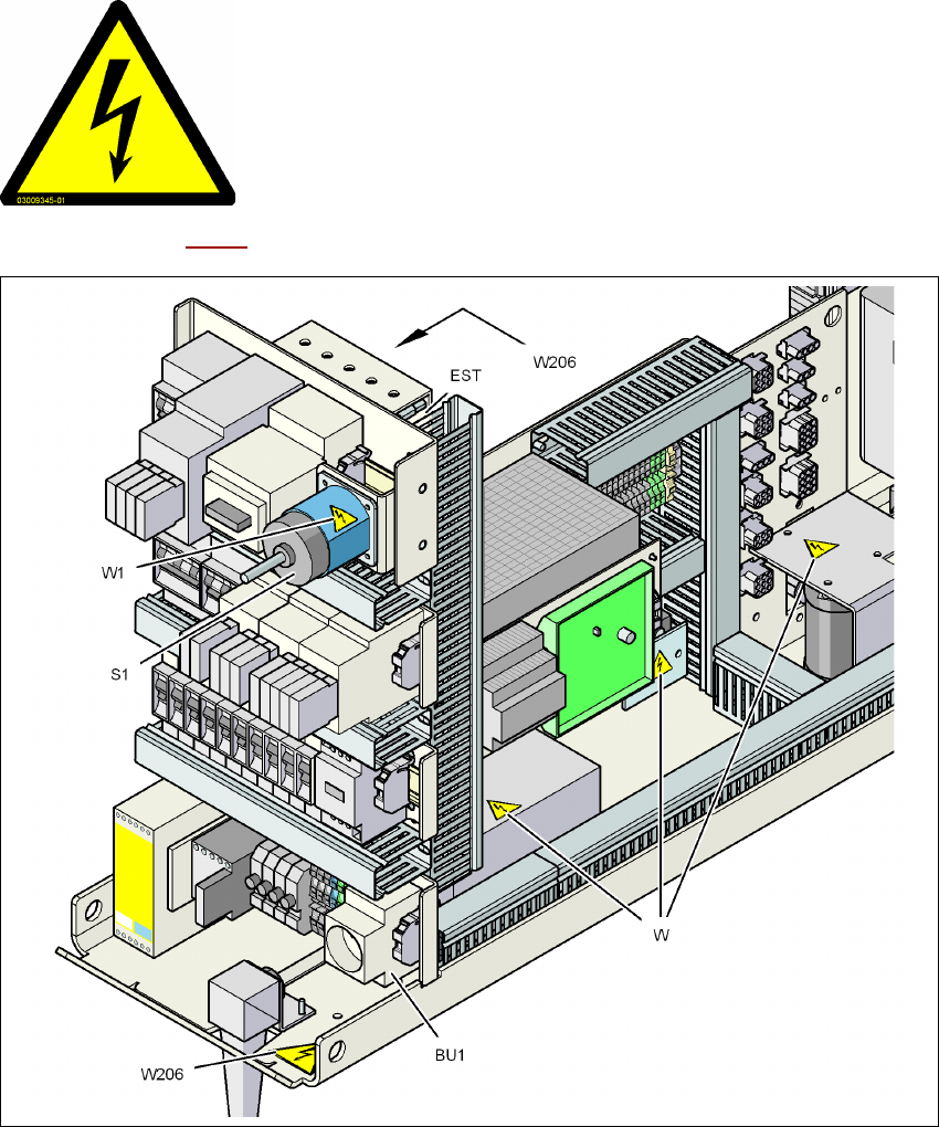 Abb. 2.2 - 7 Warnschild W206, W und W1 an der Stromversorgung