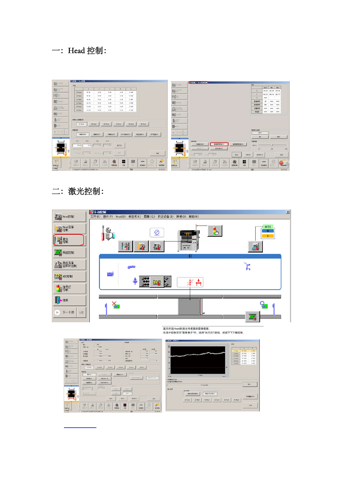 头 X、Y、Z、Q 方向移动,真空、吹气控制及相机照明确认。