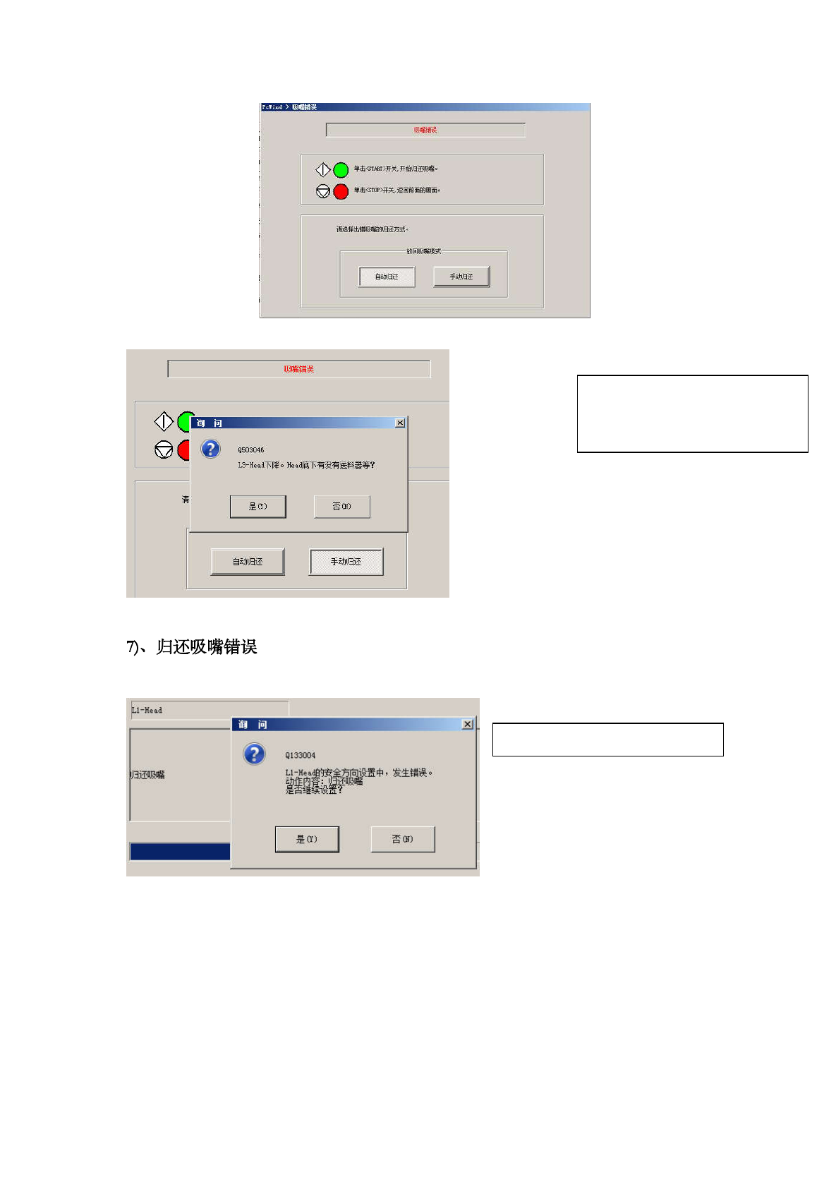 若选择手动归还,会提示“Head 下降,底下有没有供料器”,操作过程繁琐