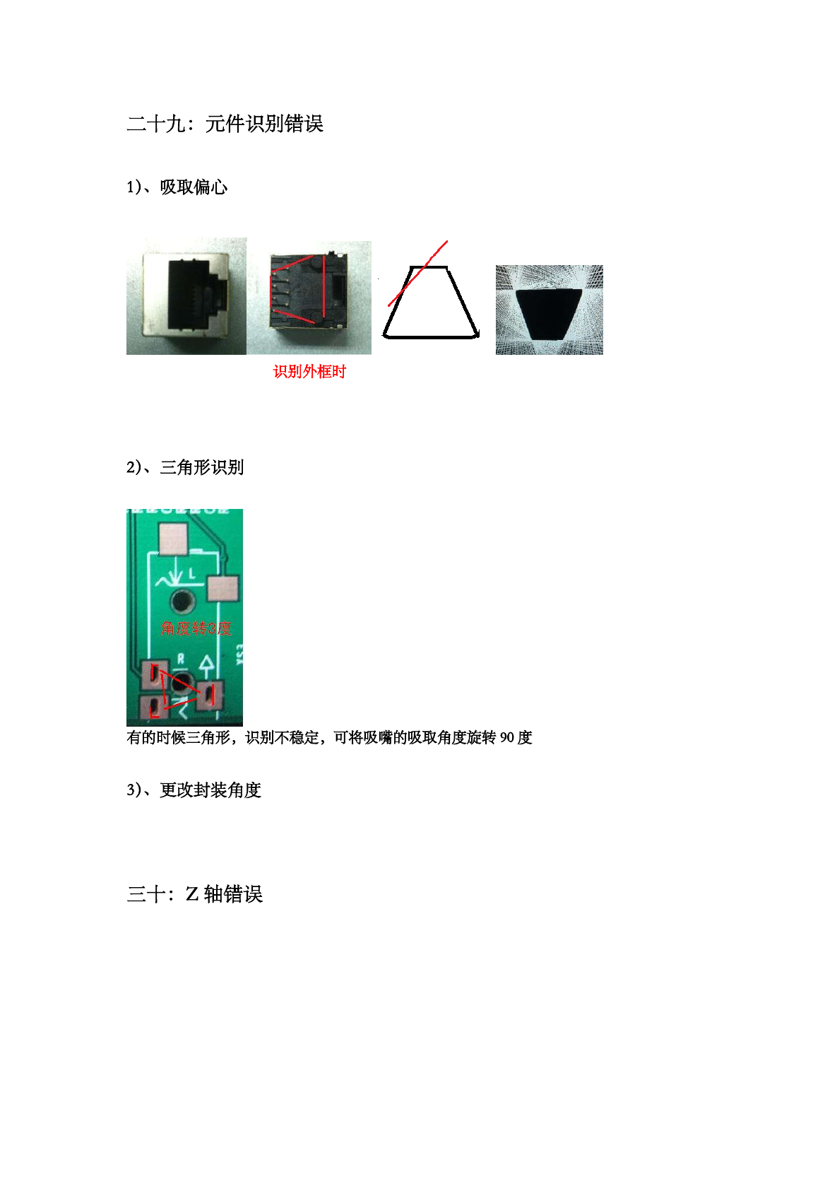 寸时,不可吸取偏心,此时识别底部梯形,虽不稳定,有一边引脚无法识别出,不影响正常