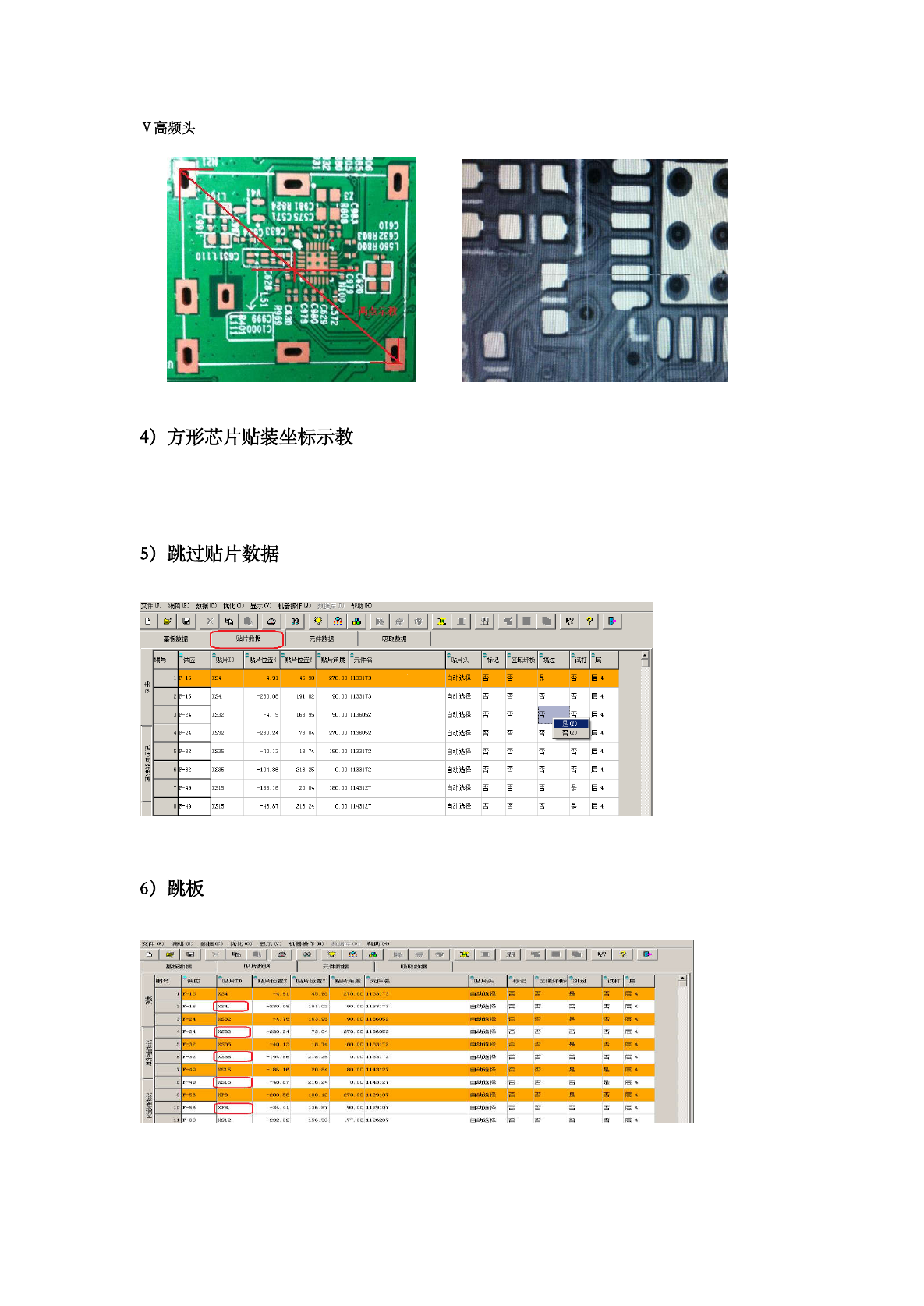 列项目“跳过”单击右键,选择“是”,贴片坐标跳过后会显示黄色。