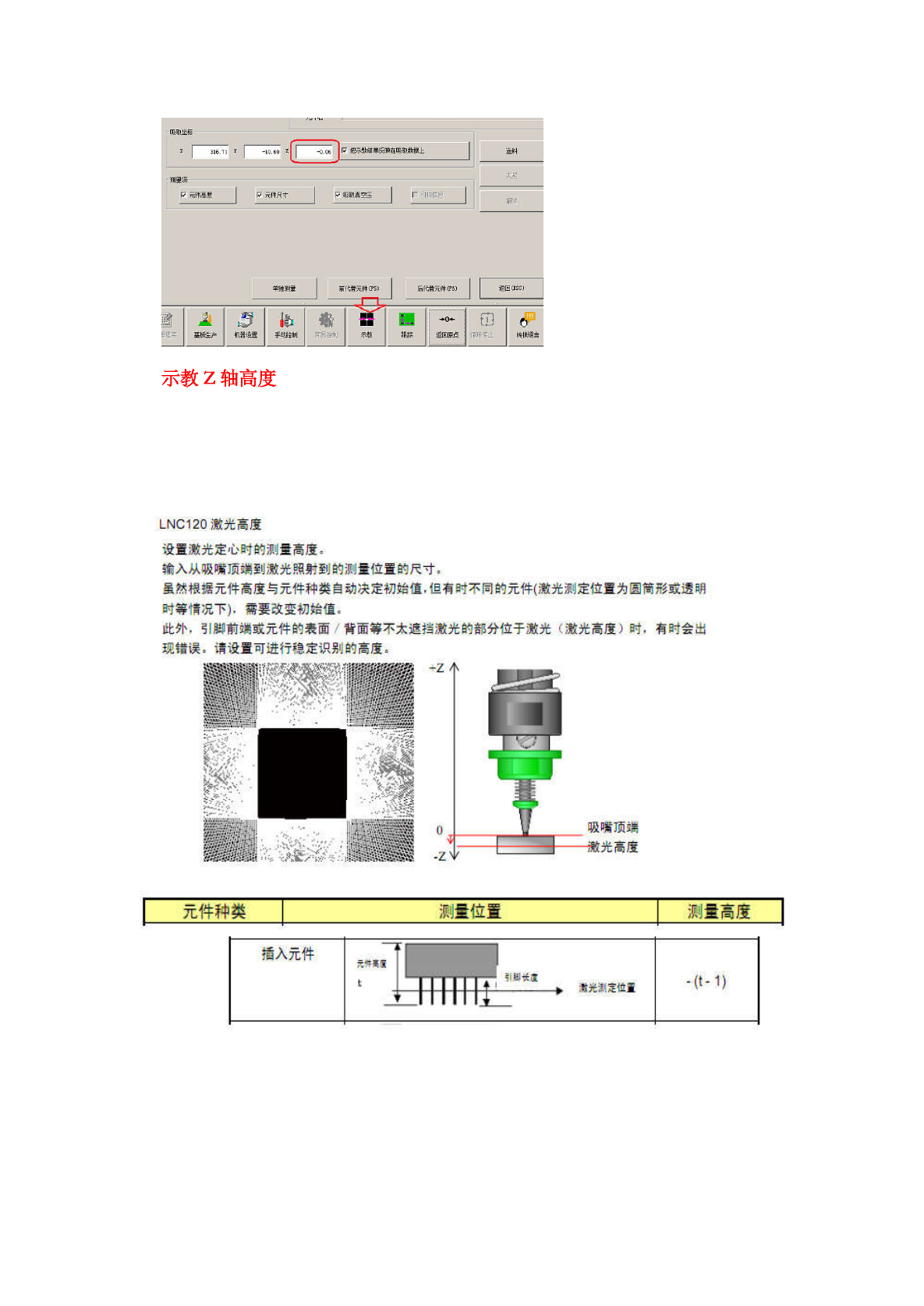 输入从吸嘴顶绱到激光照射到的汨