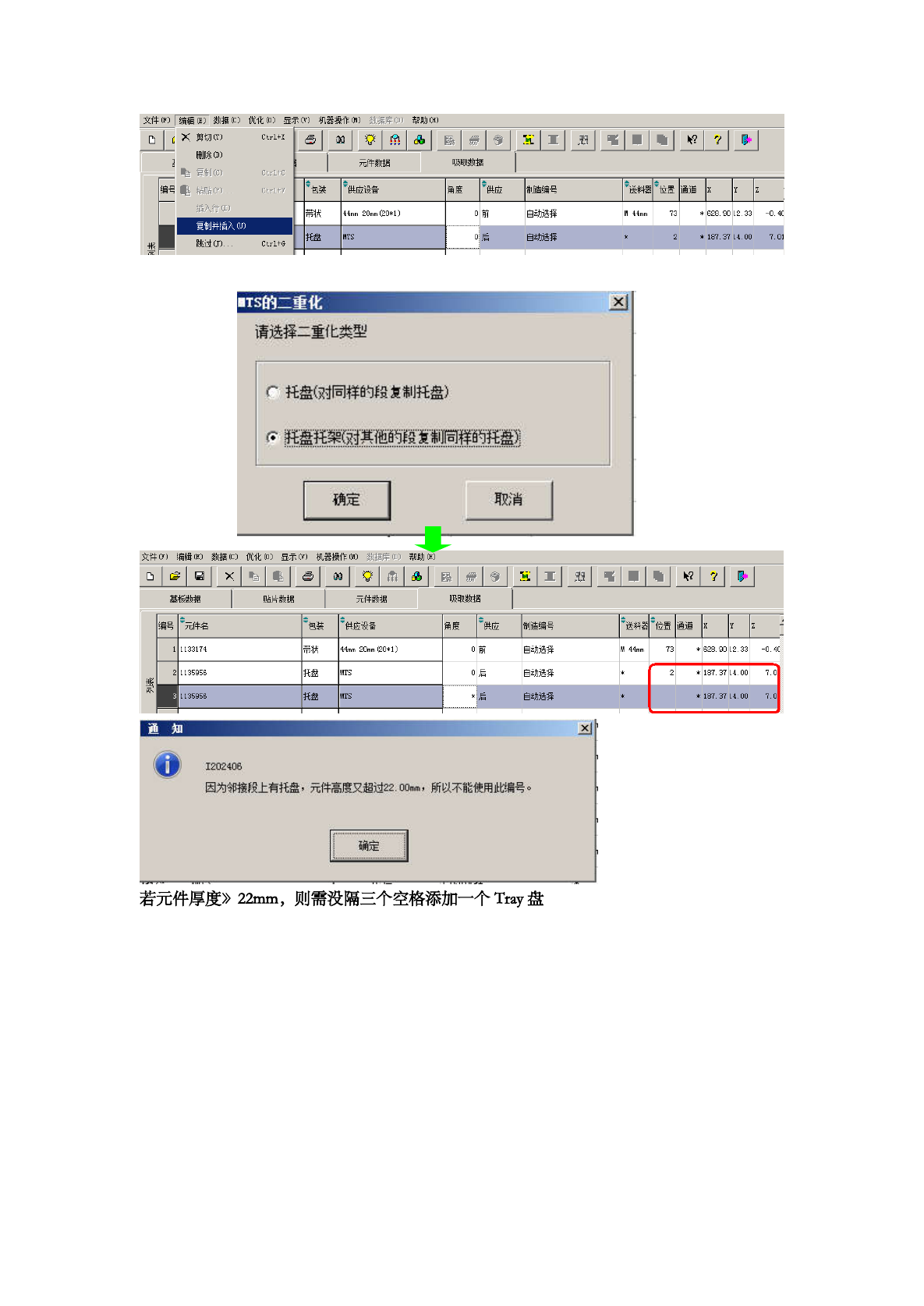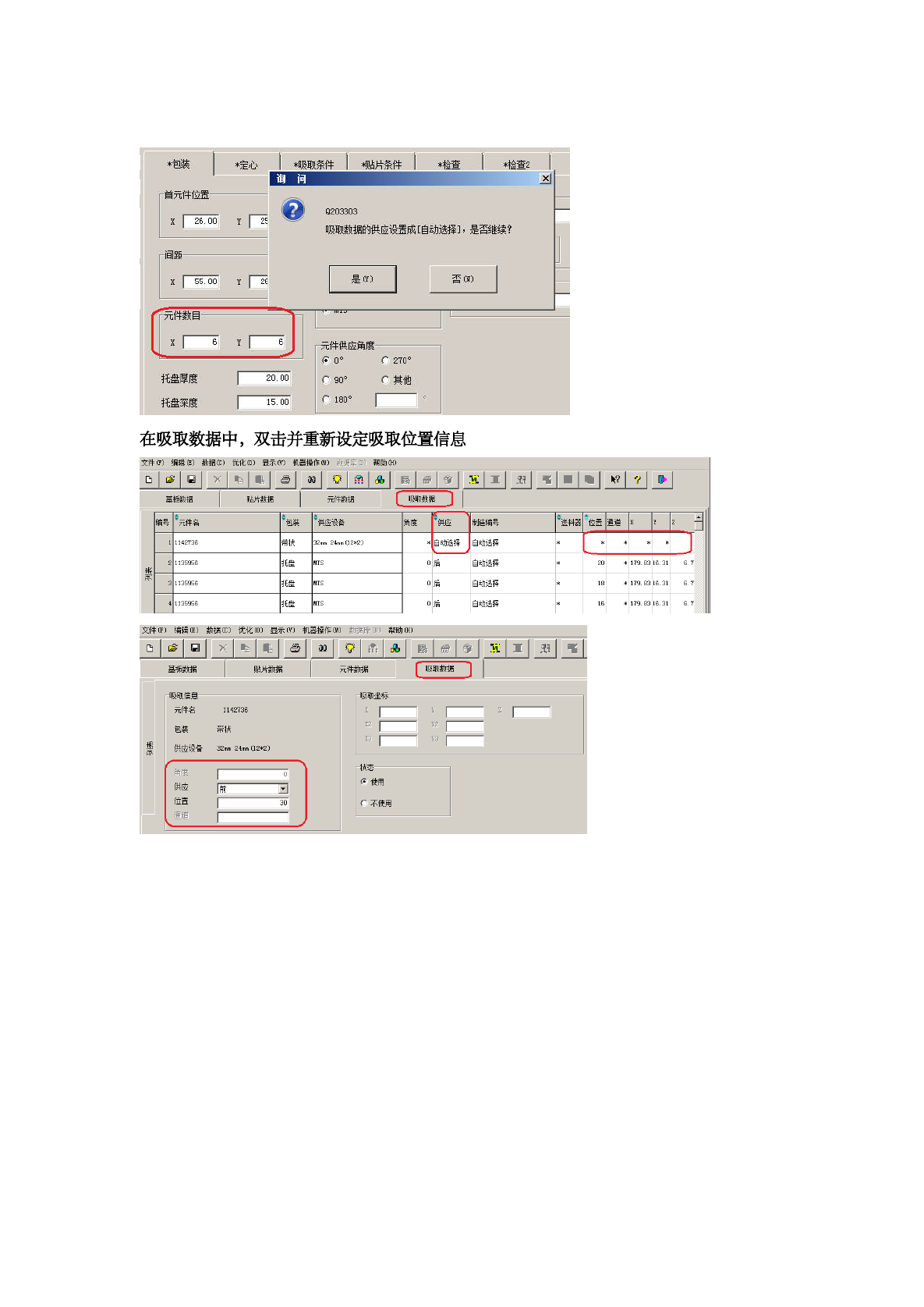 更改完元件数 目后,提示“吸取 数据的供应设 置成【自动选择 】是否继 续?”选择“是” , 若点“否” , Tr ay 盘物料的元件数 目将不会发生 变化 ,点完“是 ”后,重新设定吸取 物料的 注意事项 文件 CP ) 1 编辑 f 教掮 ( c ) 优化 ( 0 ) 显示 ⑺ 机器操作 ( H ) 教掮库 ① 〕 帮助 CH ) Ctrl + X a | | v | 免 | & | ^ | # | ^ | x 111 $ …