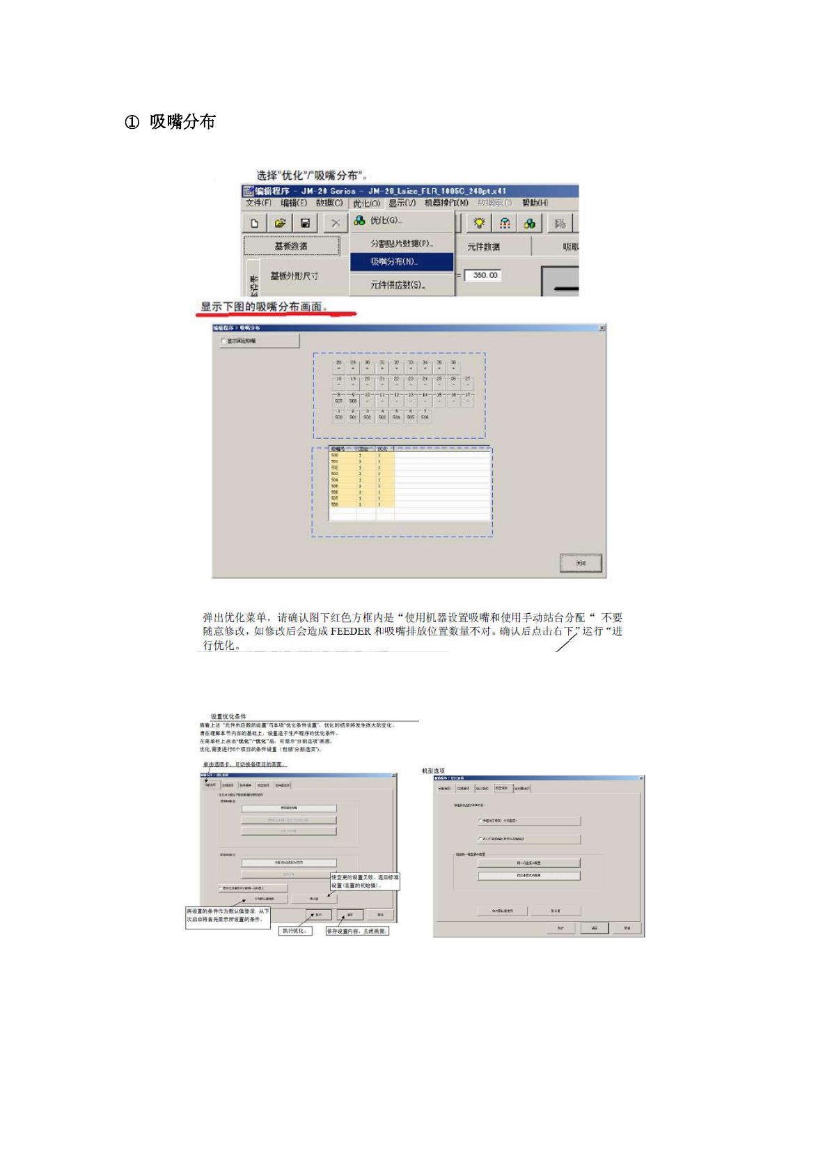 五 : 检测 、 优化程序 1 ) 数据完成状态 2 SJ 记录总数 芫成数目 基板数掮 元件数掮 吸取数掮 V 卜卜 | 记 录 数 与 完 成 数 目 一 致 lljsJ 以数掮芫成状 如果记录总数和完成数目一致 , 则表示数据已完成 , 在完成的 “ ( r 中显示 ~ ” 。 另外 , ‘ ‘ 吸取数据 ’ 及记录总数为 o 的项目 , 即使不显示也被看作完成 有未完成的项目时 , 请完成该项目 . 2 ) 优化 优化过程中出现…