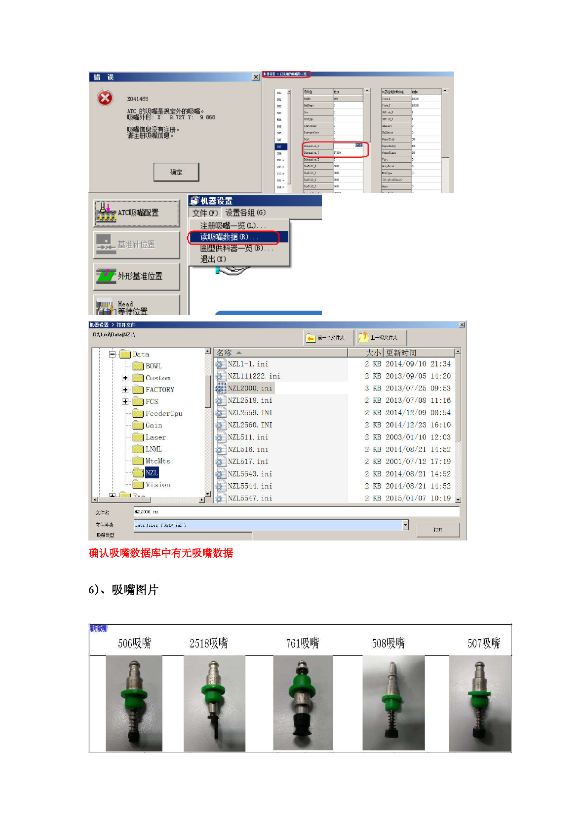 确认吸嘴数据库中有无吸嘴数据
